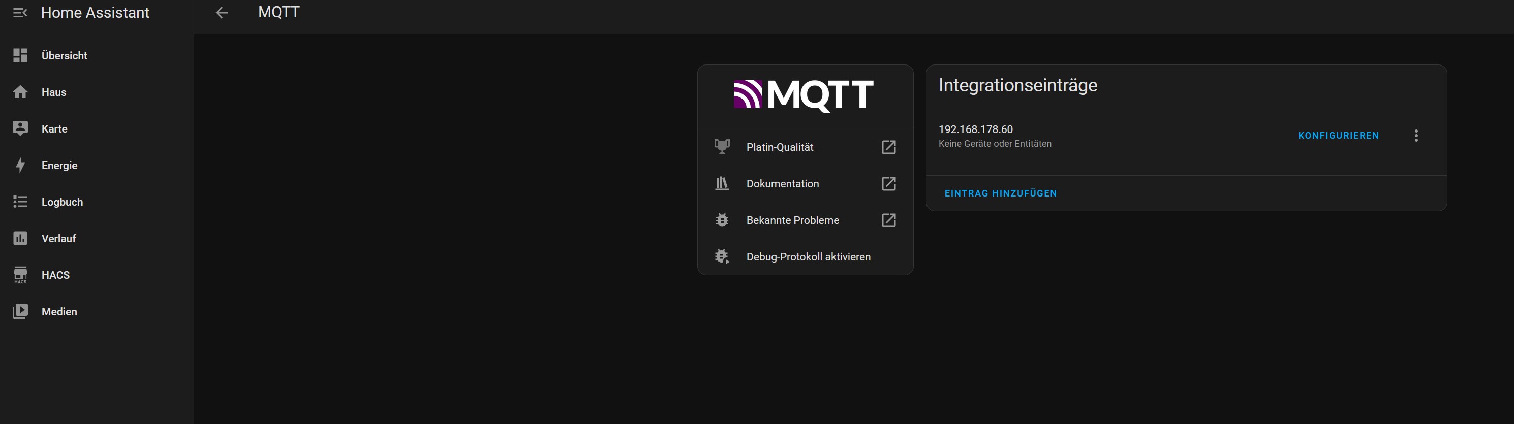 Unter Geräte&Dienste die MQTT Integration