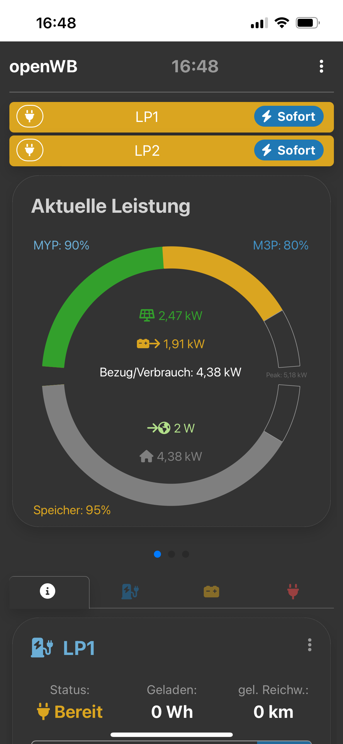 Mir ist gerade aufgefallen, dass die Speicherentladung fälschlicherweise zum aktuellen Wert des PV Ertrag und des Hausverbauch addiert wird. Die Werte von Solaredge und der openWB unterscheiden sich, da beim Zeitpunkt des Screenshots sich gerade die Werte geändert hatten.