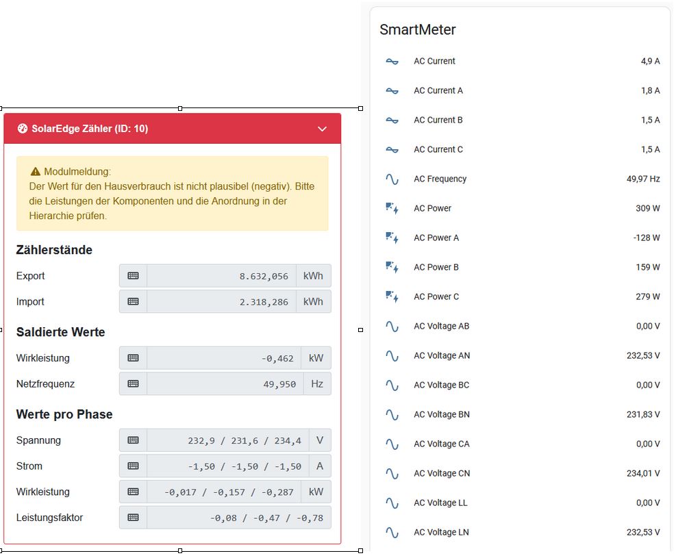 meine openWB meint immer toggelend dass mein Hausverbrauch negatig ist, wobei aber bsp. SE Plugin im Homeassistant die Werte positiv anzeigt.
