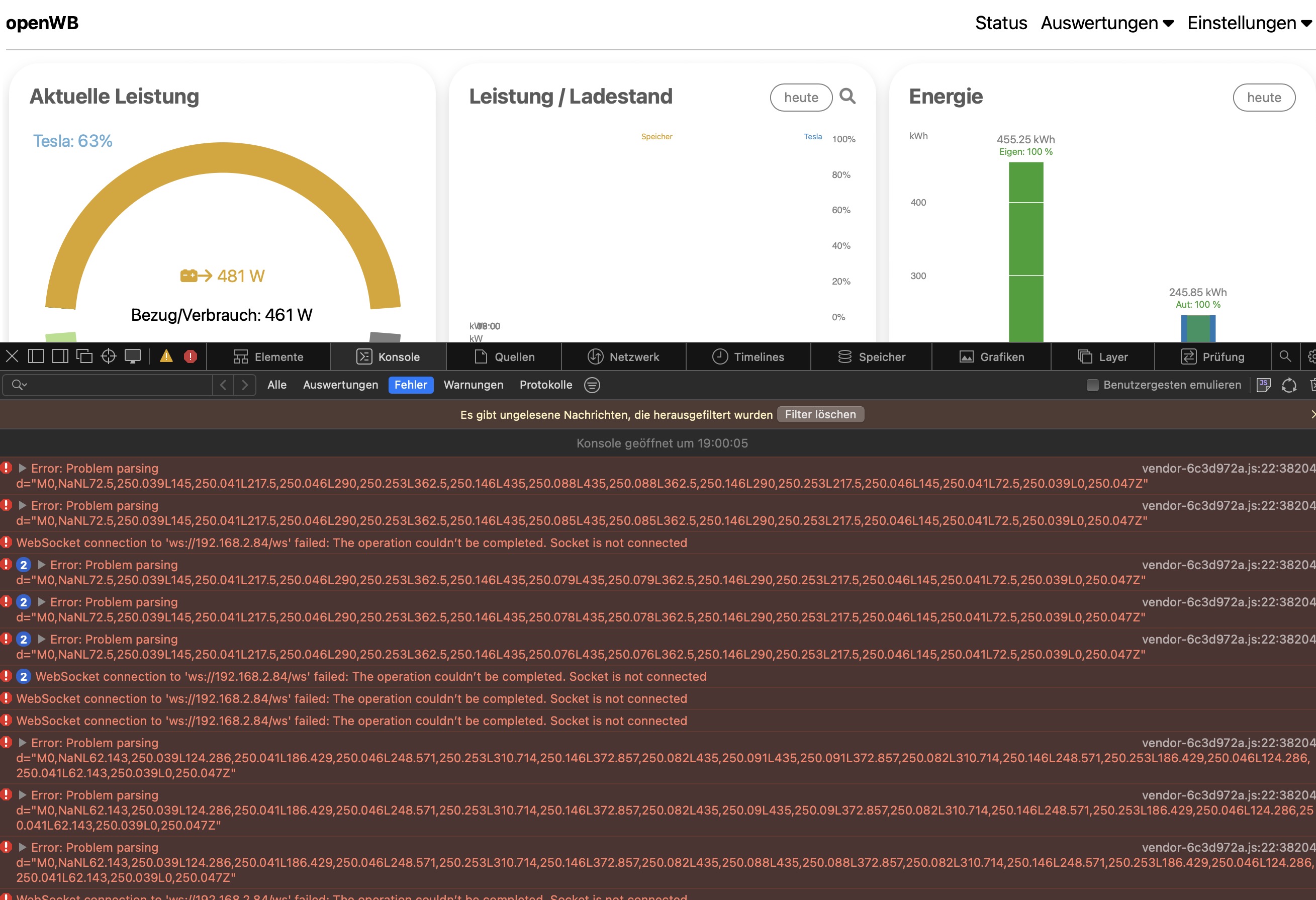 kai9555 hat geschrieben: Sa Feb 10, 2024 7:39 am Mit dem aktuellen Master 2024-02-09 15:10:47 +0100 [b76acd96f] habe ich das Problem leider noch immer. Der mittlere Graph lädt nach dem aufwachen des Display nicht oder nur sehr unzuverlässig und bleibt weiß. Verhalten ist im Chrome und Safari Browser auf dem iPad identisch.