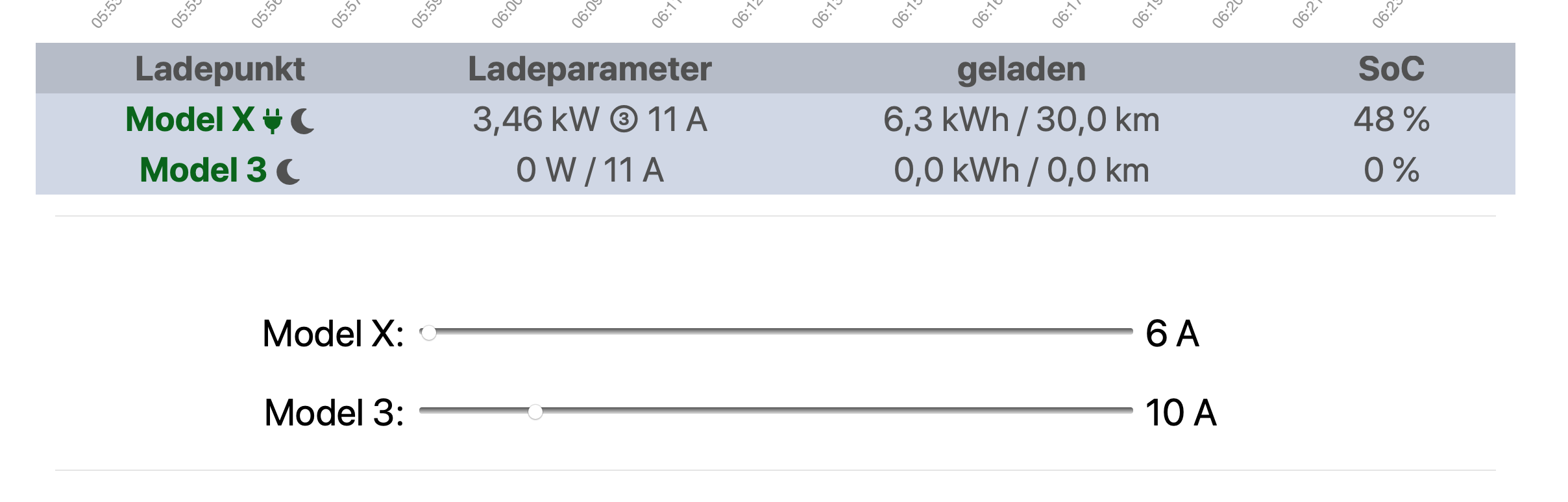 By-the-way: So ganz kann ich die Logik hinter dem Wieder-Einschalten nicht verstehen. Warum muss denn genug Leistung für beide Ladepunkte gleichzeitig da sein. Könnte man nicht per Definition sagen, dass LP1 immer der bevorzugte LP ist und LP2 ff. später starten, sobald die Summe der erforderlichen Mindestladeströme da ist? Dann wird LP1 eben runter geregelt und beide laufen parallel wieder hoch. Mit der Logik ist es selbst bei 2 1-phasigen LPs schon mal ne ganz schöne Hürde, die nur im Sommer schnell fällt (passende kWp vorausgesetzt).