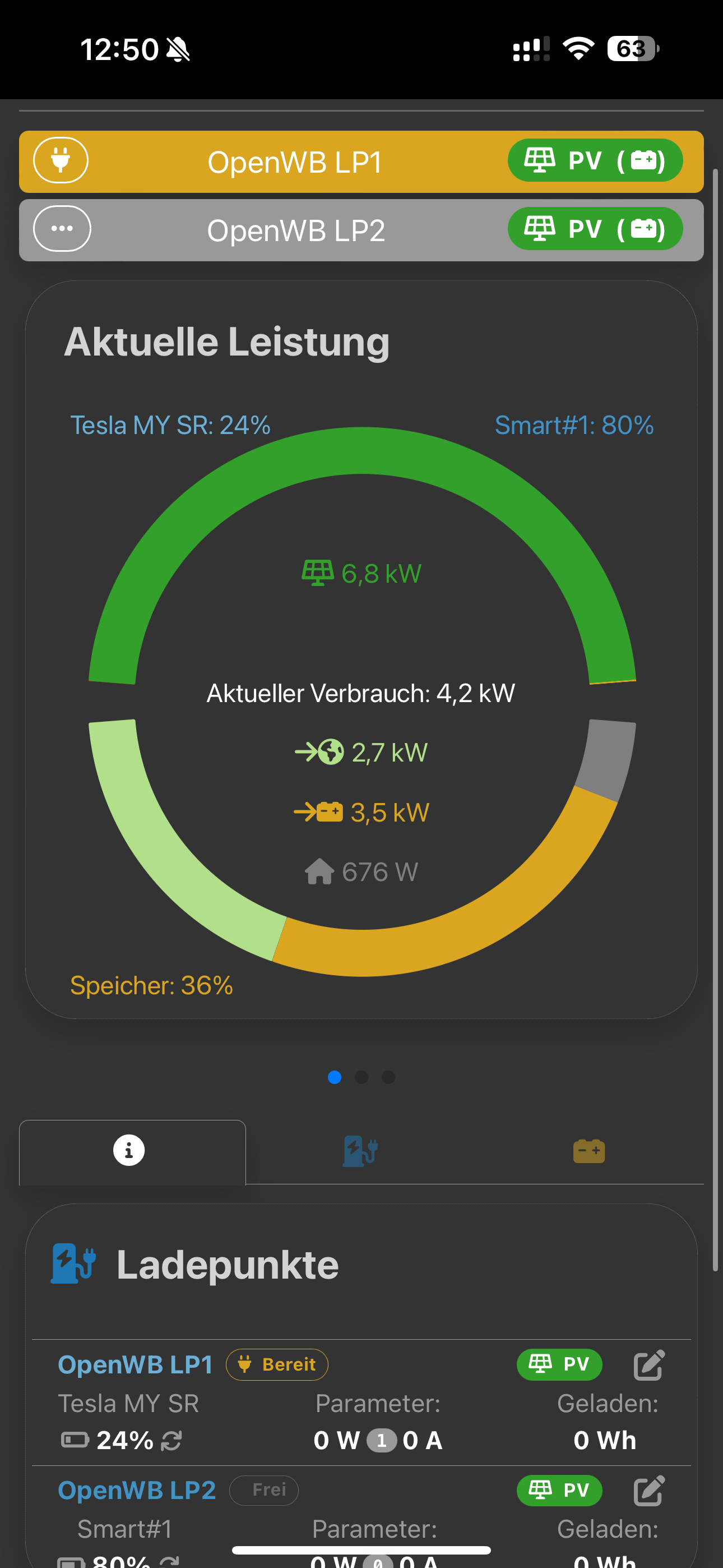 Ich vermute auch hier, dass dies aufgrund des Versatzes zwischen Zählerwert und Wert vom Wechselrichter kommt. Diese Werte sollen alle 20s aktualisiert werden, was per MQTT auch verifiziert werden konnte. Ich vermute unglückliches Zusammenspiel vom Hochregel der OpenWB und dazu nicht sofort passenden Zählerwerten? Was für log Auszüge helfen euch hier? Bzw. wie kann ich die Dateien direkt runterladen oder per Copy&Paste durch 1000-Zeilen scrollen zu müssen?
