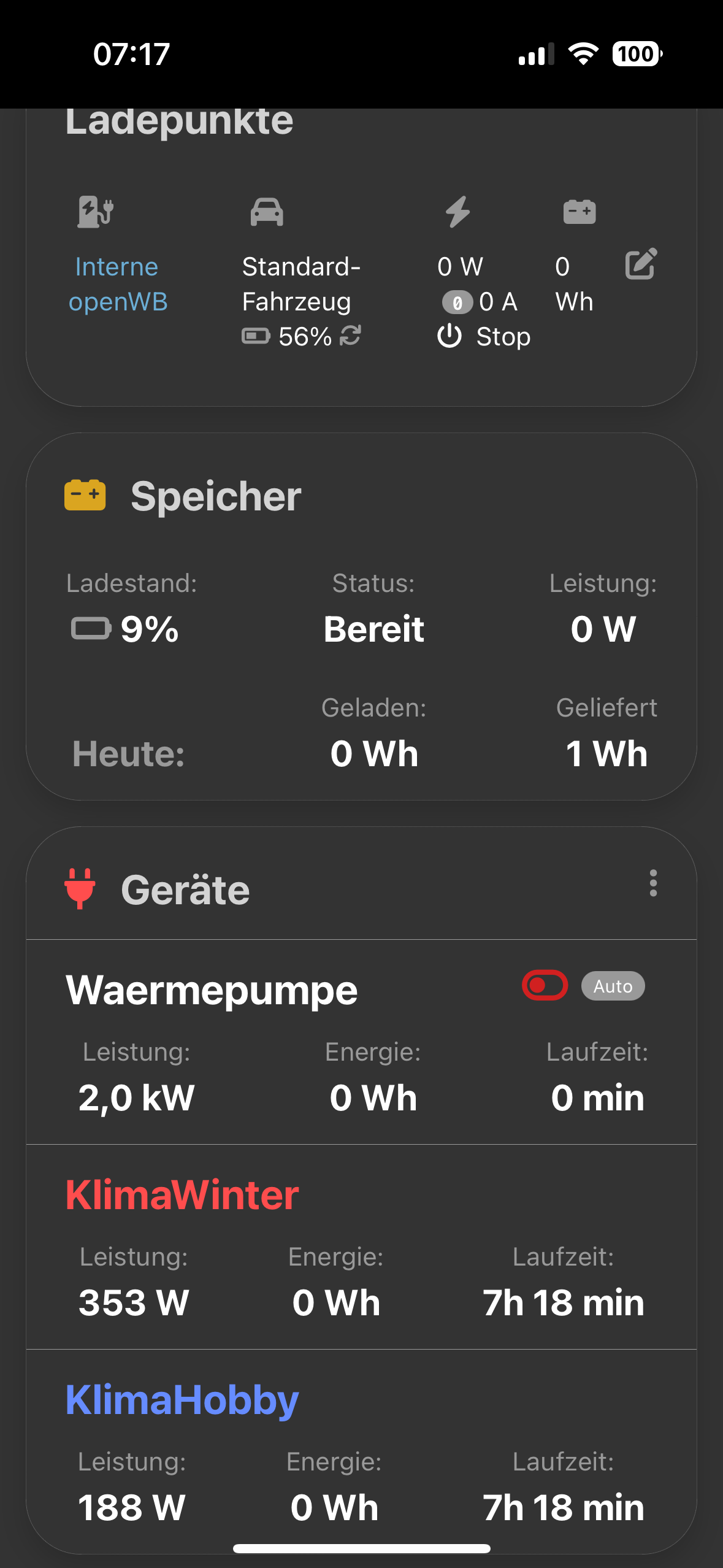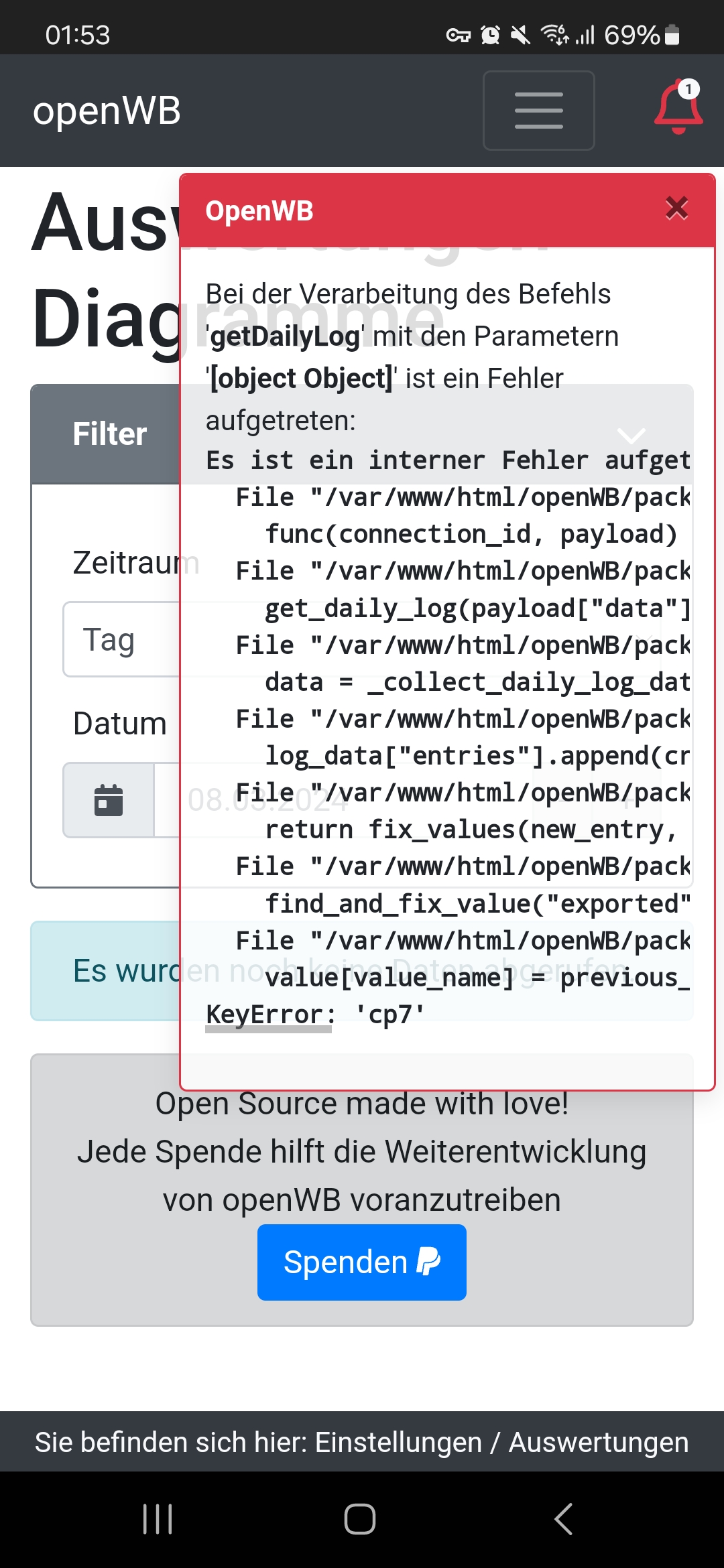 habe eben sogar mal die komplette OpenWB zurückgesetzt und neu eingerichtete. Leider bleibt das Problem mit der Tagesenergieanzeige.... Der mittlere Graph steht weiterhin auf "heute" und sonst werden die Werte ja korrekt ausgewertet.