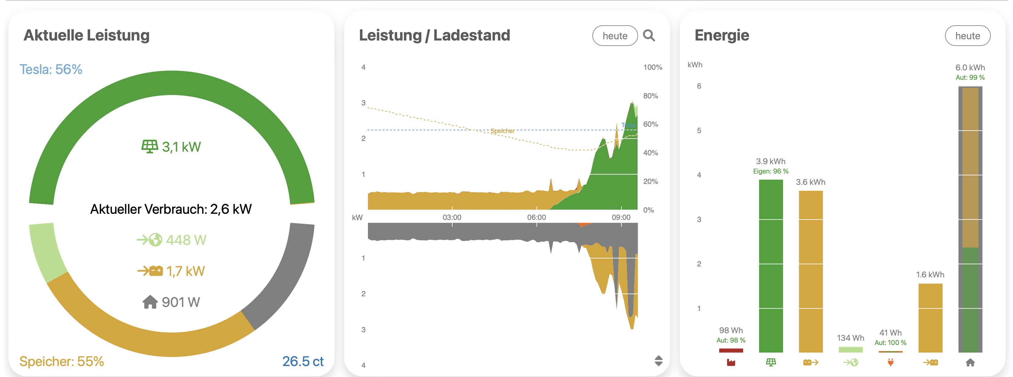 Stelle ich mir schwierig vor, da deine Speicher-Ladeleistung nach dem EV-Ladestart sinkt.kai9555 hat geschrieben: Mi Mär 20, 2024 9:18 am Also z.B. starte die Ladung mit PV Überschuss wenn Export am EVU >=200 Watt und der Speicher eine Ladeleistung von 1,7kW erreicht hat.