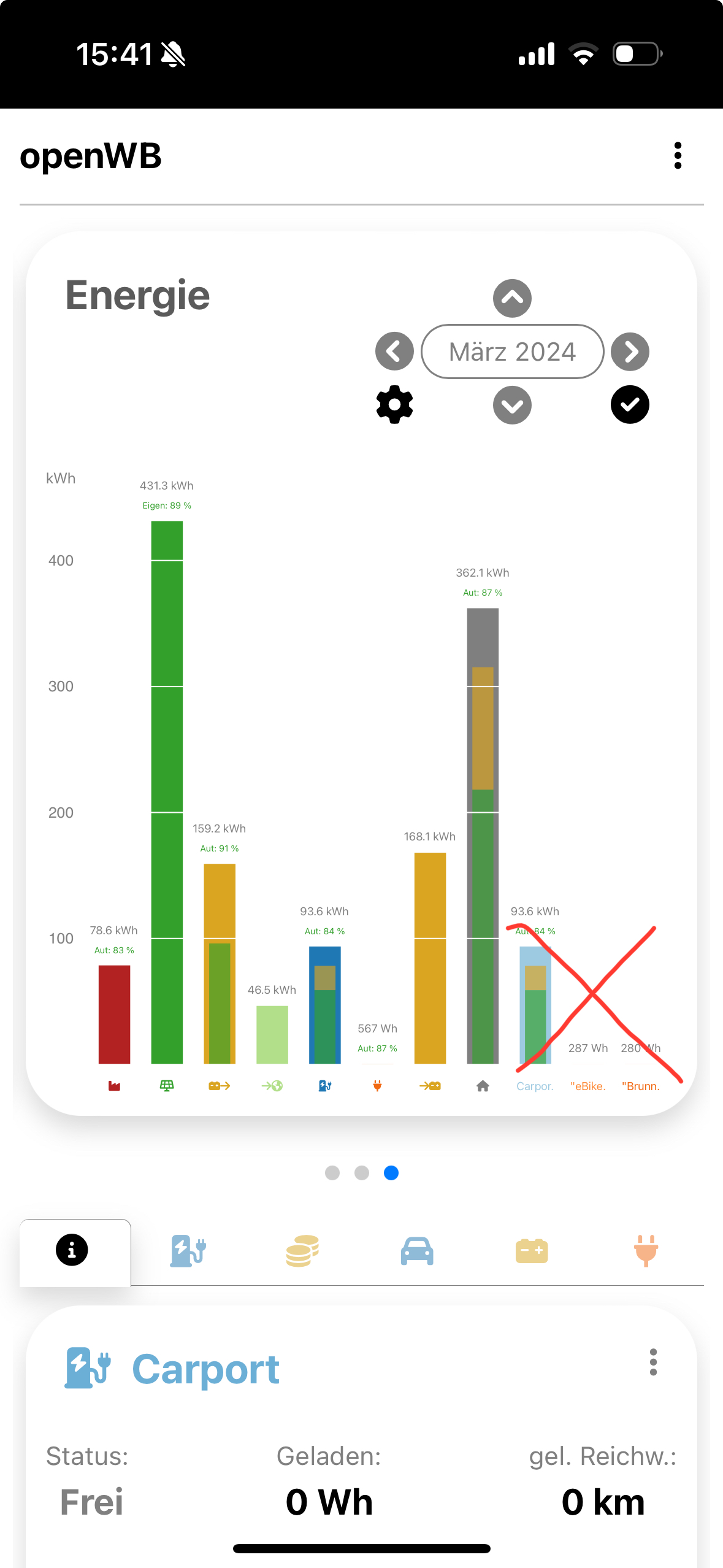 könntest du in einem späteres Update die Balken in der Monatsansicht analog zur Tagesansicht anpassbar machen? Also das konkret Smarthomegeräte ausgeblendet werden können und der Ladepunkt nur einmal angezeigt wird?