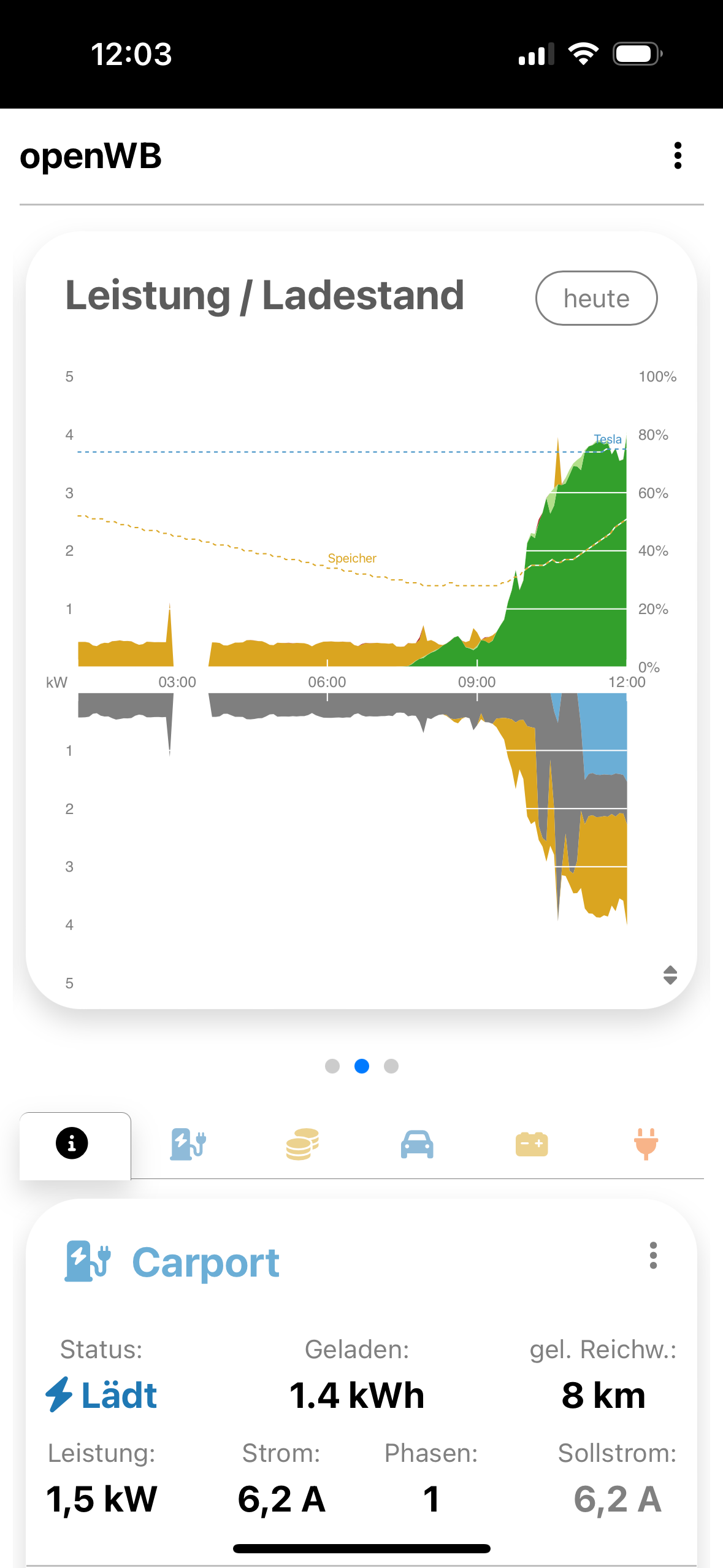 electron hat geschrieben: So Mär 31, 2024 6:58 am Der Autarkie-Prozentsatz über der Netzbezug-Säule zeigt das an. 2.4 kWh Bezug auf 17.5 kWh Verbrauch sind 14%. Die 86% Autarkie, die angezeigt werden, entsprechen dem.kai9555 hat geschrieben: Sa Mär 30, 2024 7:04 pm Nicht so richtig. Am Beispiel im Anhang habe ich heute 17,5kWh benötigt (13,1kWh Haus und 4,4kWh Auto). Den Speicher beachte ich dabei nicht, da es für mich ein durchlaufender Posten ist. An der Stelle finde ich die Gegenüberstellung für mich interessant: 17,5kWh benötigt und nur 2,4kWh aus Netz dafür aufgewendet. Die Zahl 17,5 erscheint jedoch nirgendwo. Wenn noch Verbräuche von mehreren Smarthomegeräten dazugerechnet werden müssen, wird es schnell komplizierter die Relation schnell zu erfassen.
