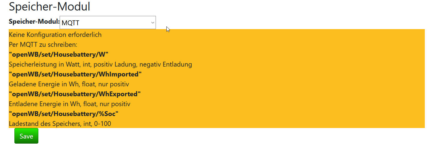 -> in der openWB Modulkonfig testweise das mqtt-Modul auswählen und die Infos tauchen auf: