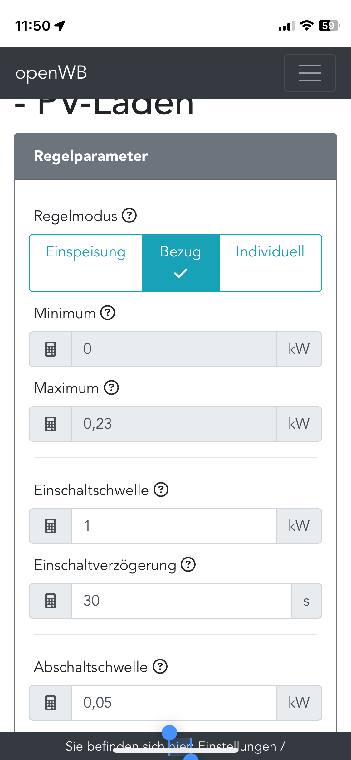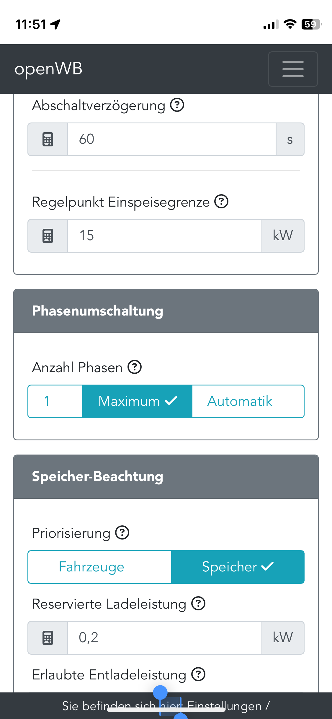Die restlichen Einstellungen bzw. was auf der Hauptseite (Standard Theme) im Infofeld des Ladepunkt steht wären noch interessant.