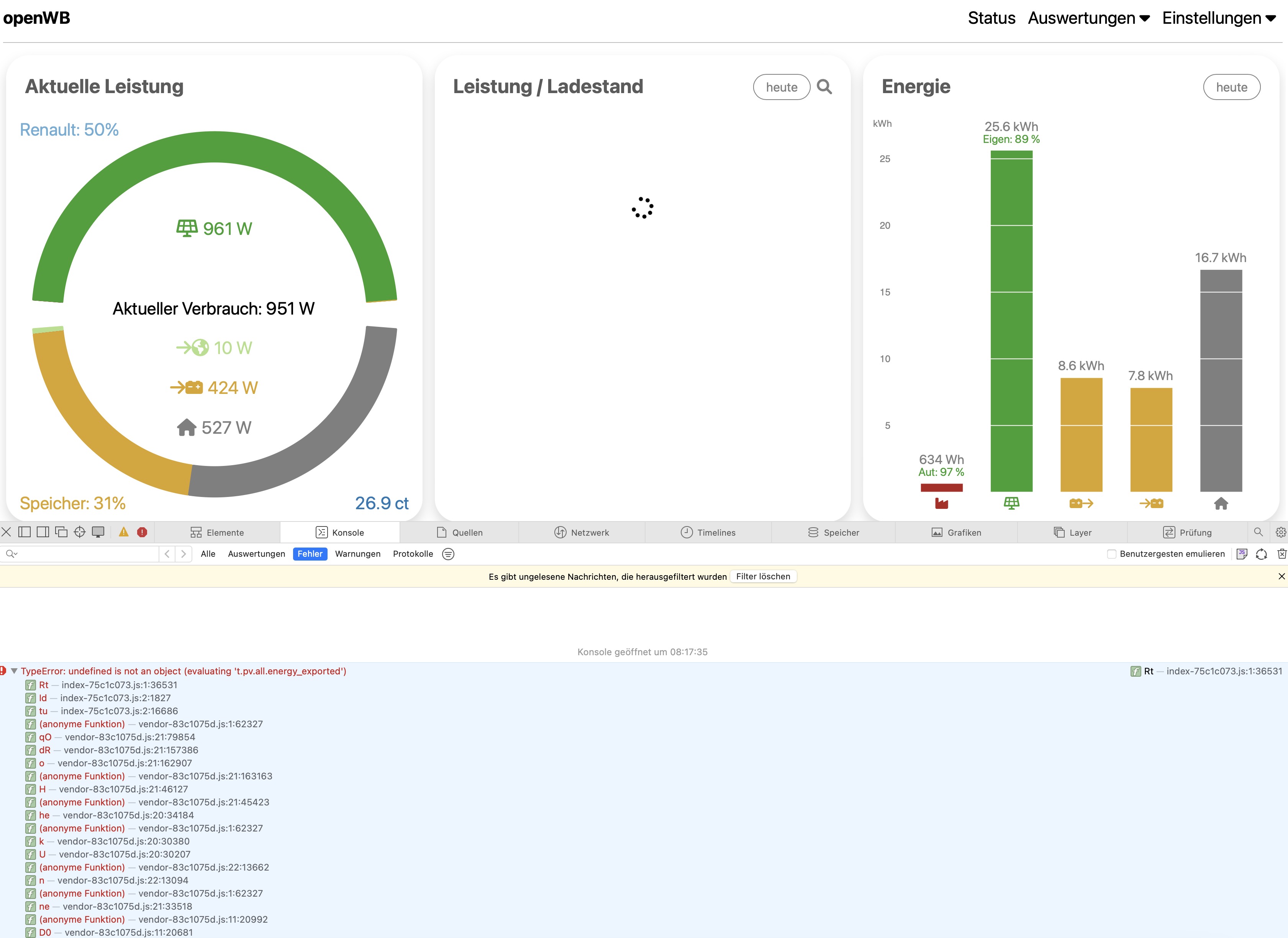Weiterhin keine Anzeige von Stromexport, keine Anzeige vom Ladepunkt bei den Balken.