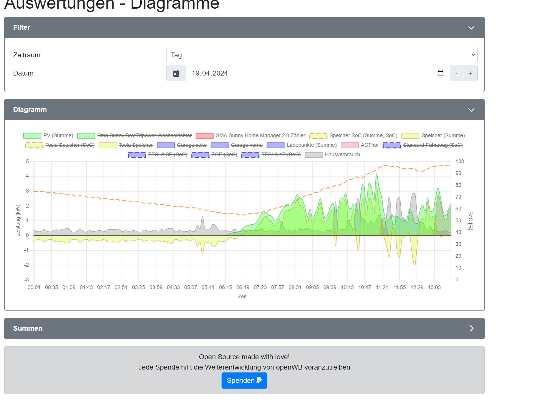 Hab auf das neueste Master aktualisiert. Export ist jetzt wieder da. Da ich heute kein Auto geladen habe, bin auf den gestrigen Tag gegangen. Hier fehlt der Balken fürs Laden?! Der Balken Export ist auch irgendwie komisch.