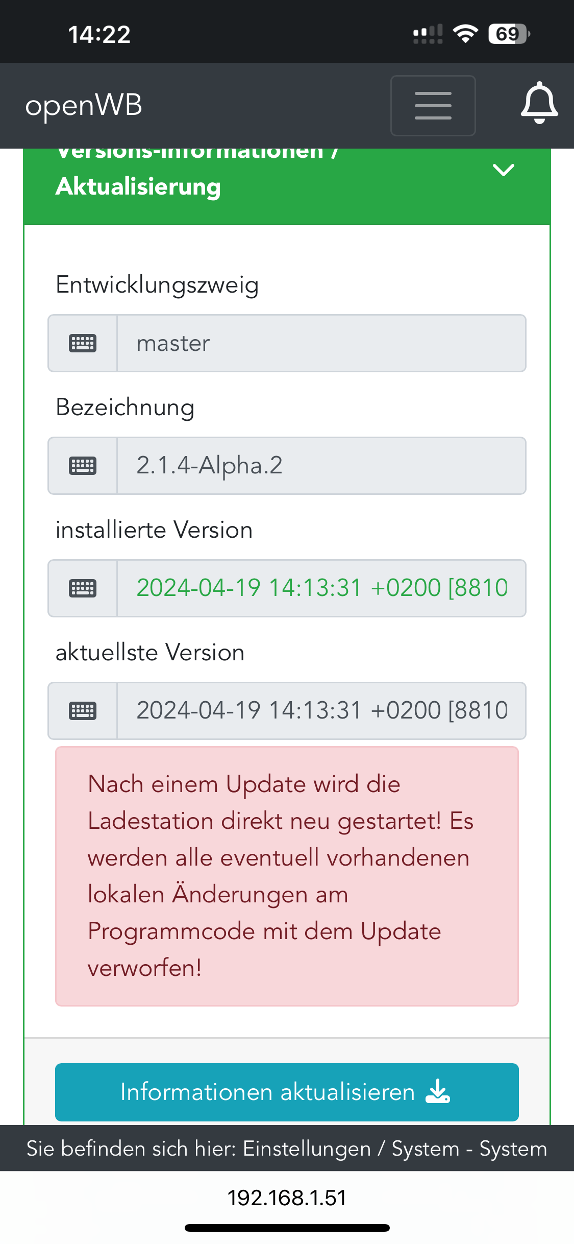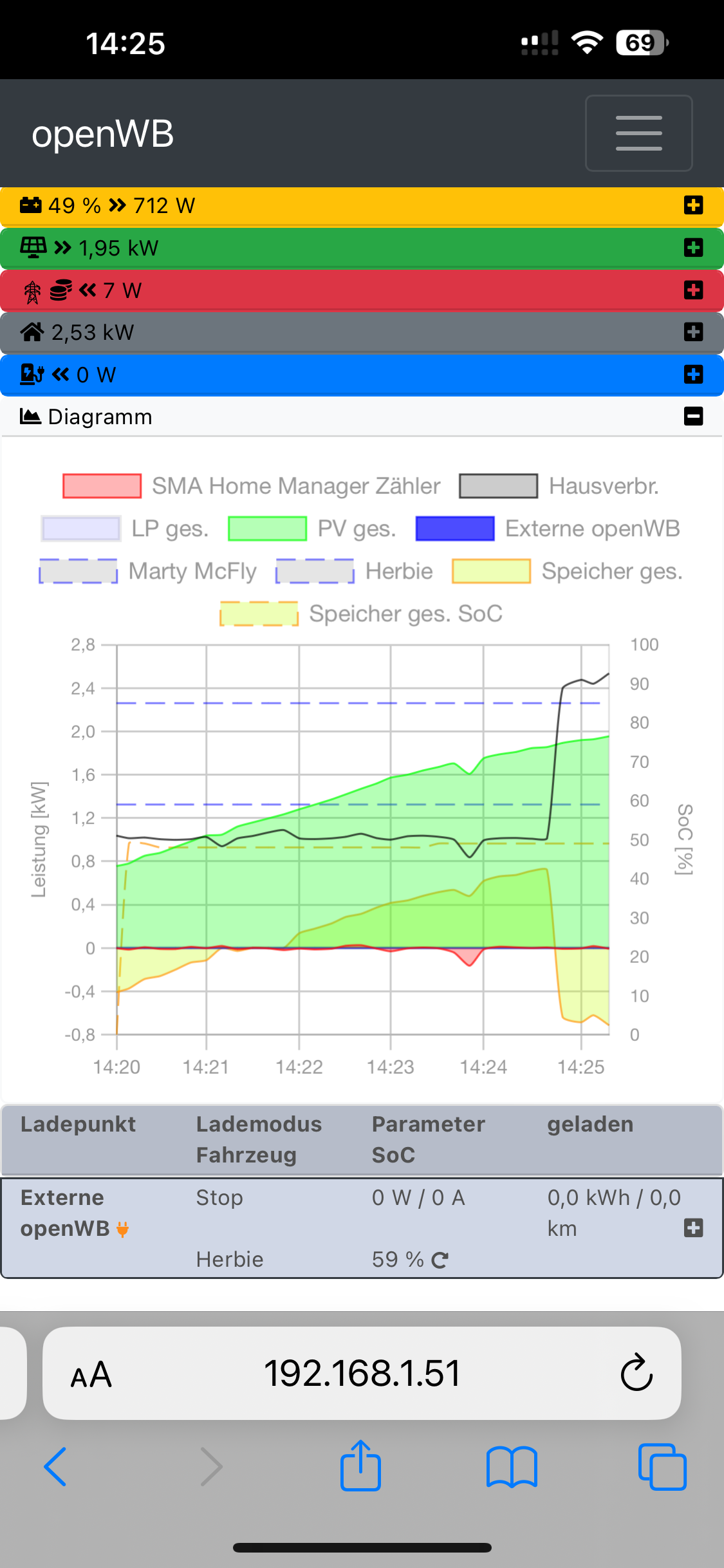 Ich habe gerade noch einmal einiges versucht. Neustart der openWB, verschiedene Browser, Cache gelöscht, öffnen im privaten Fenster. Leider immer wieder das gleiche Bild. Irgendwas ist da durcheinander, denn folgendes habe ich beobachtet: