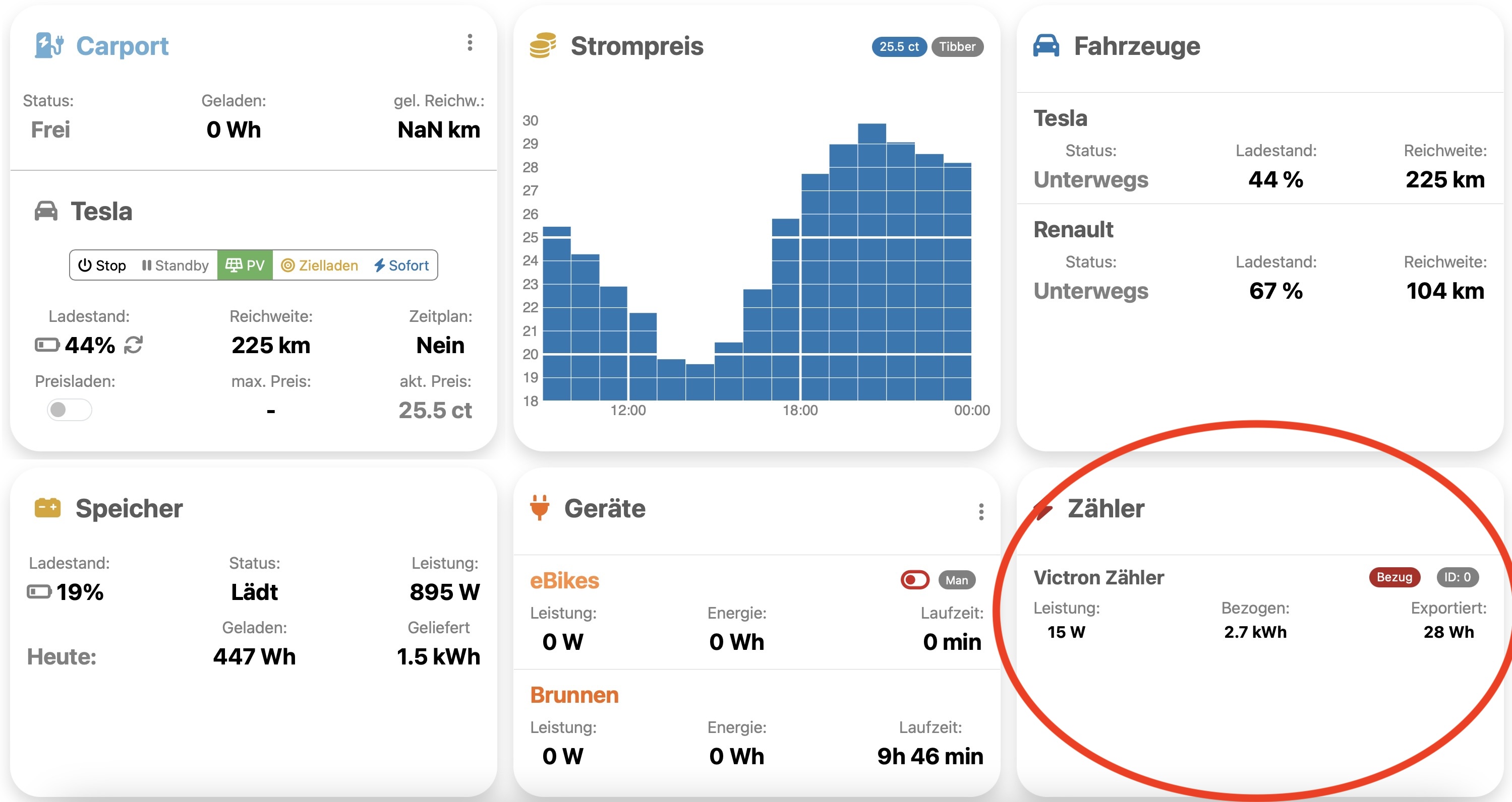 Danke! Das hat geholfen. Ich habe noch einen Bug gefunden, für die Balken der Ladepunkte und Devices wurde immer der Wert des aktuellen Tages genommen, nicht der des gerade angezeigten. Korrektur ist eingereicht.