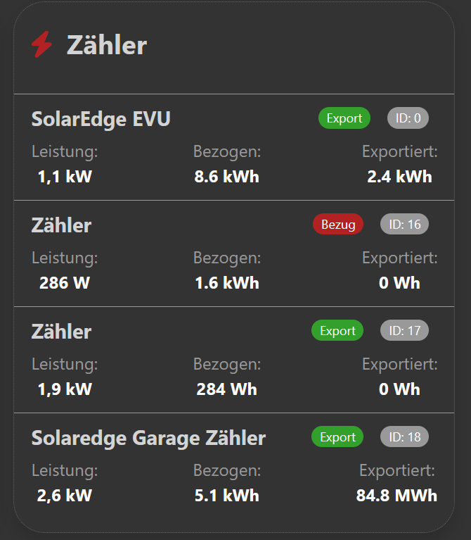 kannst Du vielleicht die Bezeichnung der Zähler noch anpassen? Schön wäre es, wenn die Namen aus der Konfiguration übernommen würden.