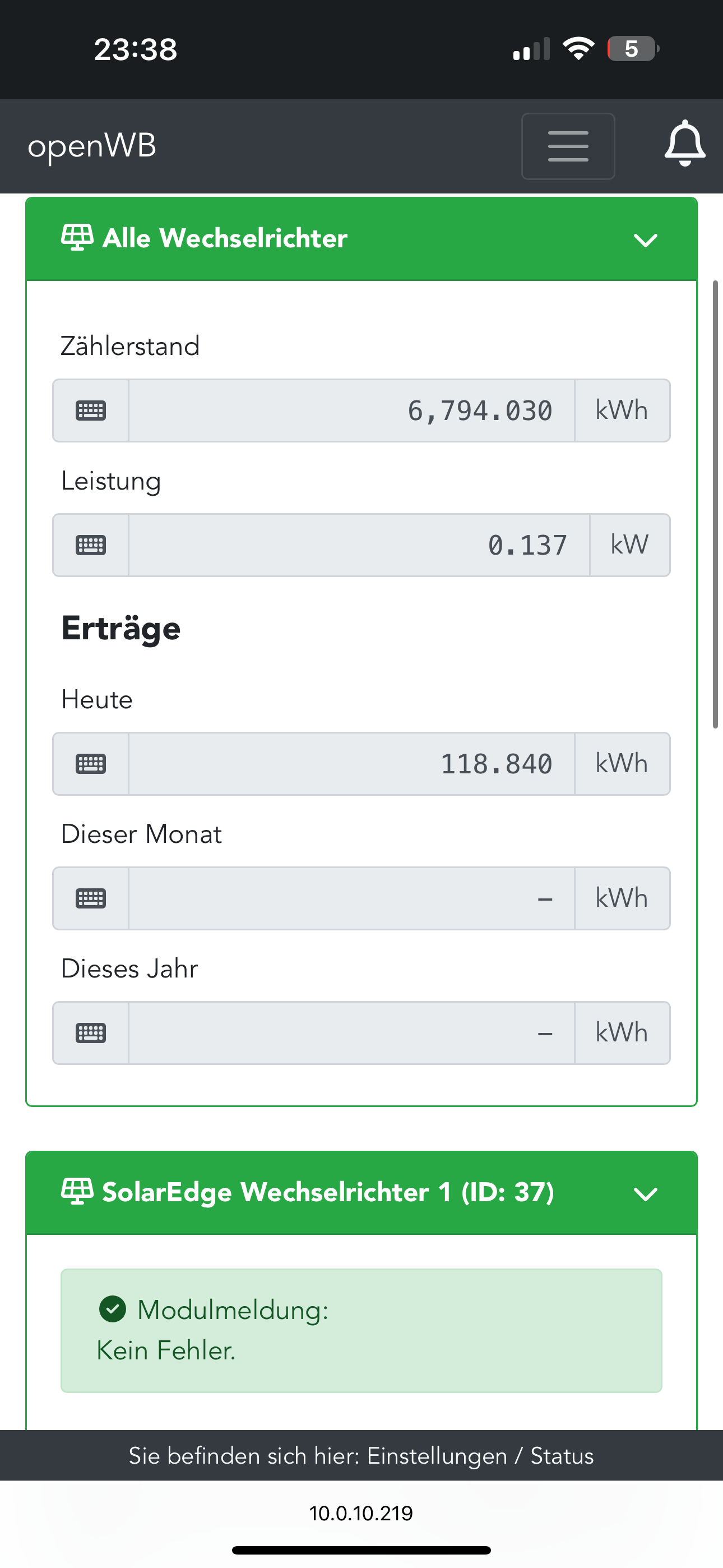 Ich habe eine open WB Duo Und dazu drei Solar Wechselrichter mit je drei Batterien. Die Wechselrichter lese ich separat über die jeweilige IP Adresse aus.