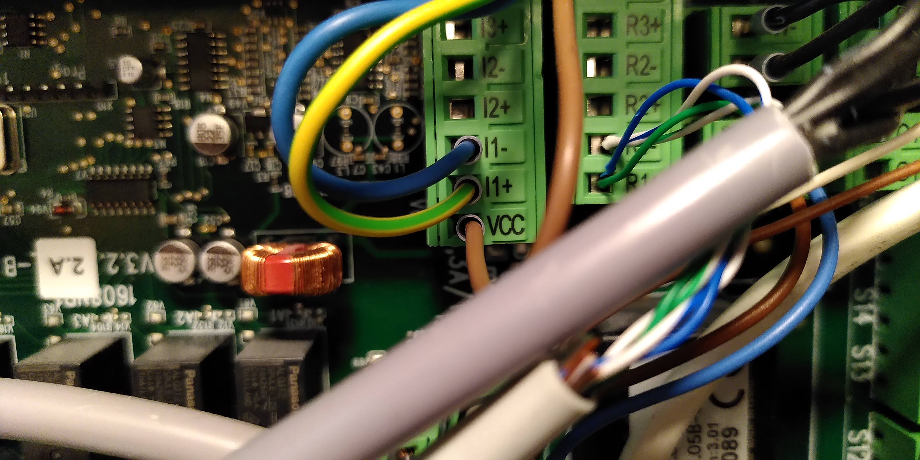 Auf der Hauptplatine gibt es einen Anschluss mit den Bezeichnungen VCC, I1+ und I1-