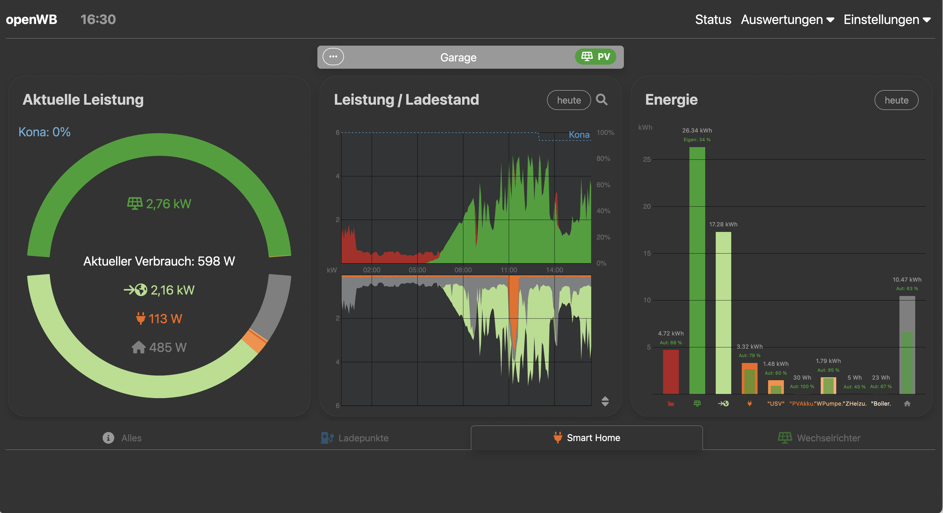 unter die dunkel-grüne Farbezone für PV-Erzeugung geschoben. Das zerstückelt die dunkelgrüne PV-Linie sehr unschön und ist einfach deutlich unintuitiver. Ich bin nicht sicher, ob ich das weiter begründen muss, da ich doch vermute, dass dies keiner absichtlichen Umprogrammierung geschuldet ist, sondern ein Nebeneffekt von etwas anderem ist. Ein noch harmloses Beispiel ist als Screenshot angehängt. Es gab schon deutlich hässlichere Tage. Sichtbar und störend wird es natürlich nur in der 120 Min.-Sicht.