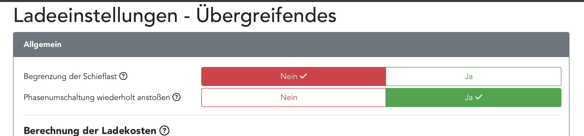 seit einigen Tagen kämpfe ich mit den Einstellungen da ohne Veränderungen in den Einstellungen nicht mehr mit 3 phasigem Laden das Auto gefüllt wird.