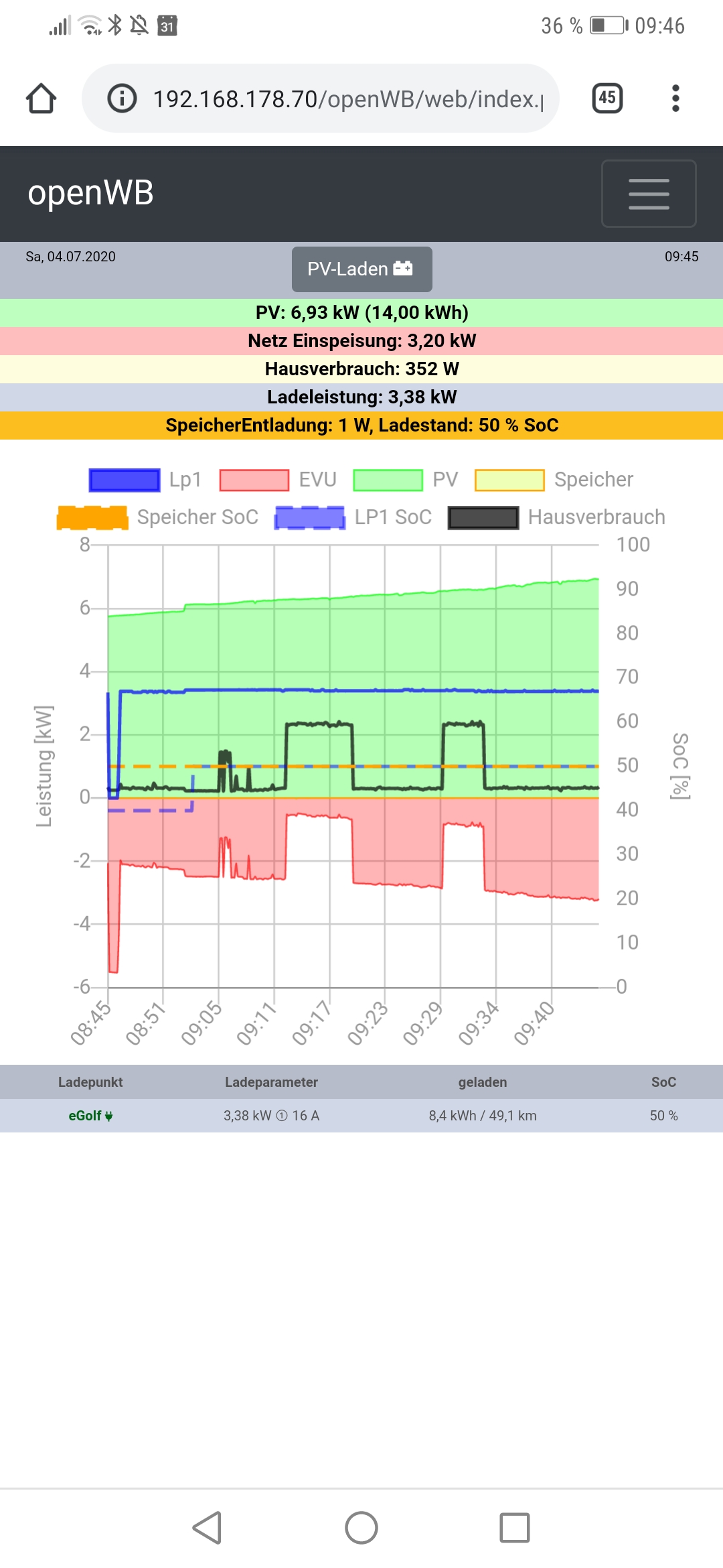 In den Einstellungen der Umschaltung ist NurPV auf einphasig gesetzt. Hier den Automatikmodus auswählen dann geht es.KrailPV hat geschrieben: Sa Jul 04, 2020 7:53 am Debug gesendet. Ich hatte vermutet, dass bei 6,93kw von Dach die Ladung auf 2Phasig umspringt?