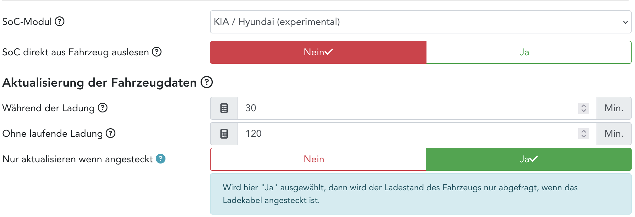 Wie wird der SOC berechnet, wenn das SOC Modul (Kia) aktiv ist und gleichzeitig der Reiter „SOC aus dem Fzg auslesen“ aktiviert ist? Stören sich die beiden Funktionen, oder korrigiert openWB die Berechnung des SOC durch das Abfrageintervall des SOC Moduls?