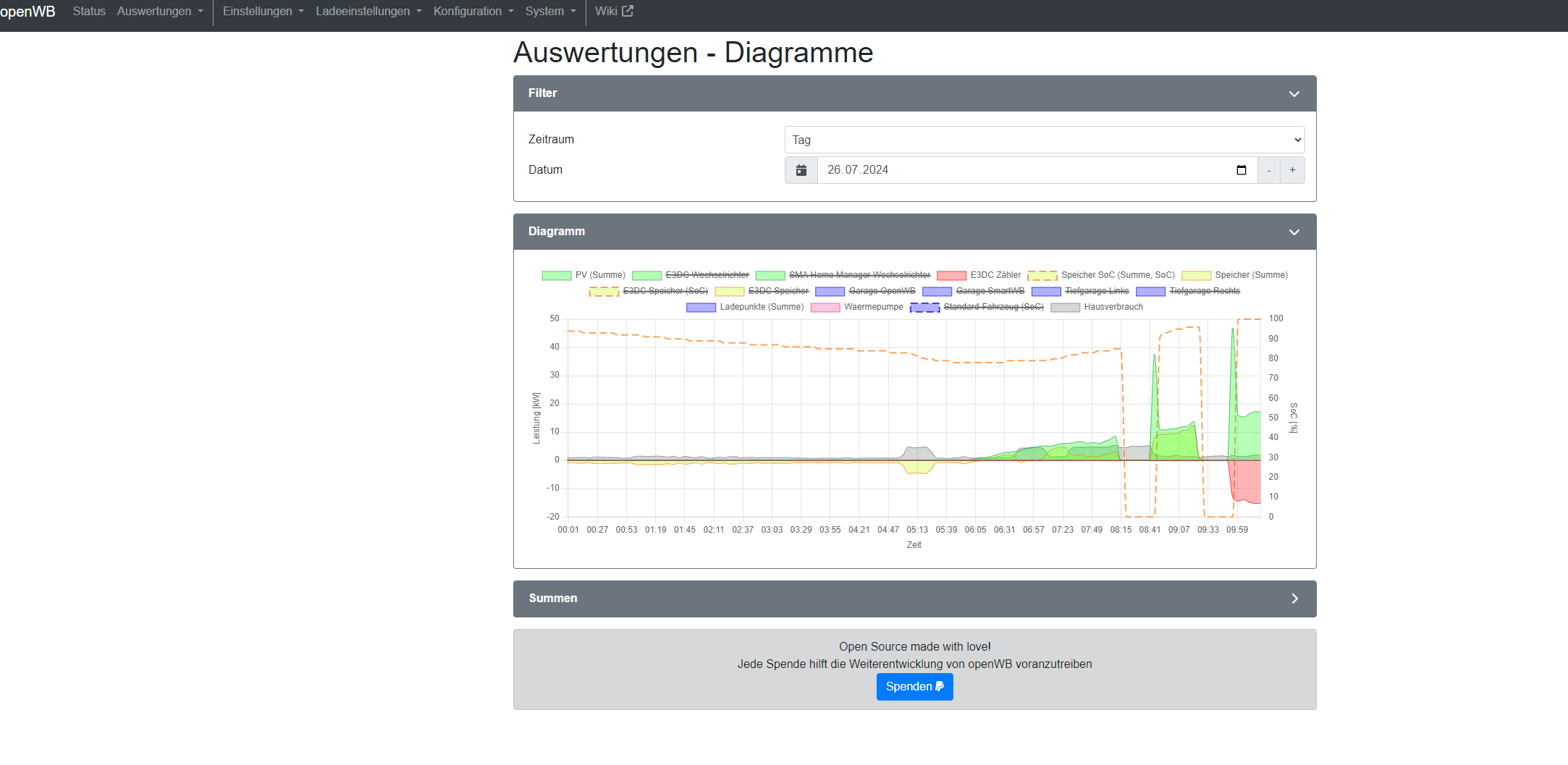 Als Ladepunkte einmal die OpenWB eingebunden und 3x SmartWB (im WLAN eingebunden) als Satelliten.