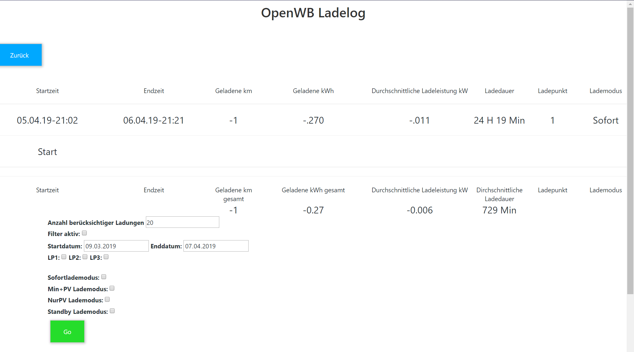 Die zweite Ladung ist auch nicht im Log zu sehen. Sehr schade, ich wollte aufgrund des Logs mit dem Finanzamt abrechnen.
