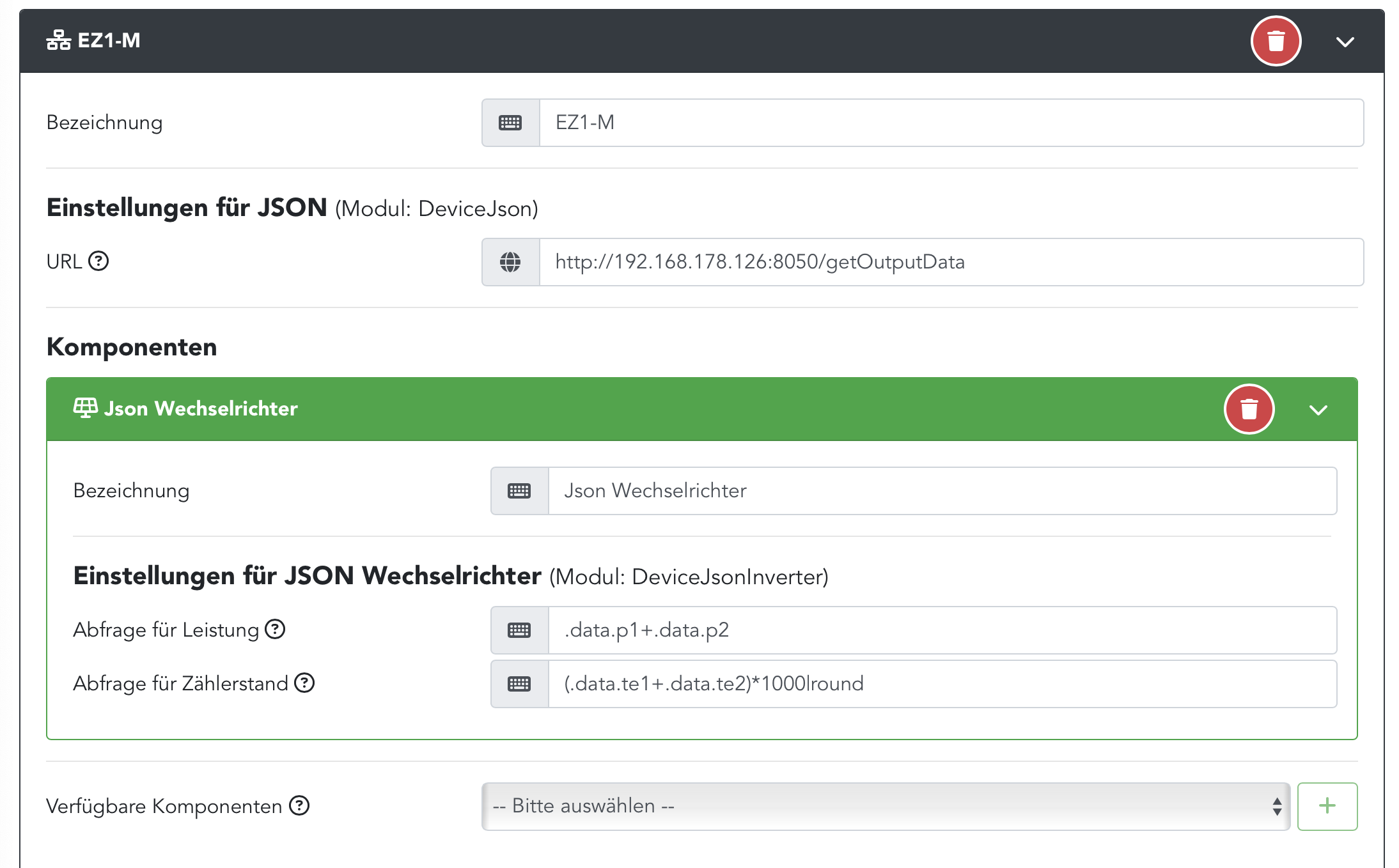 Ich habe versucht die Abfrage unter PV Modul 2 als JSON Abfrage einzubinden. Leider bekomme ich nur Fehlermeldungen im Status.