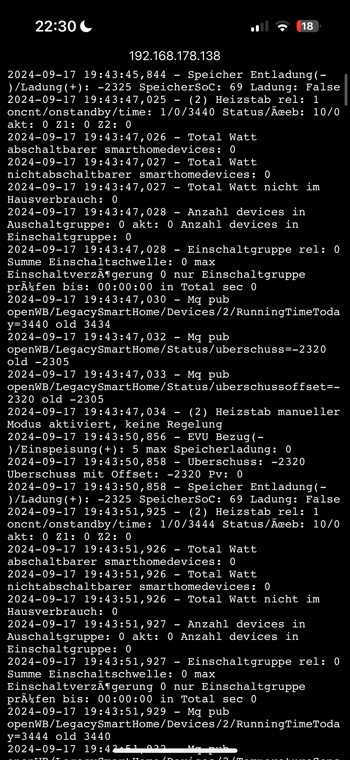 es läuft der Heizstab hat heute im Automatik Modus den PV Überschuss verarbeitet. Ich bedanke mich ganz herzlich für deine super Arbeit die du geleistet hast und das System wieder ans laufen zu bringen.