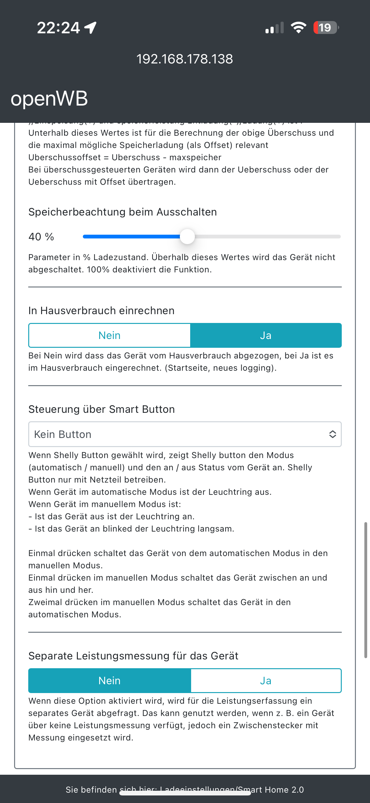 Dann btäuchte ich noch deine smarthomeparameter.