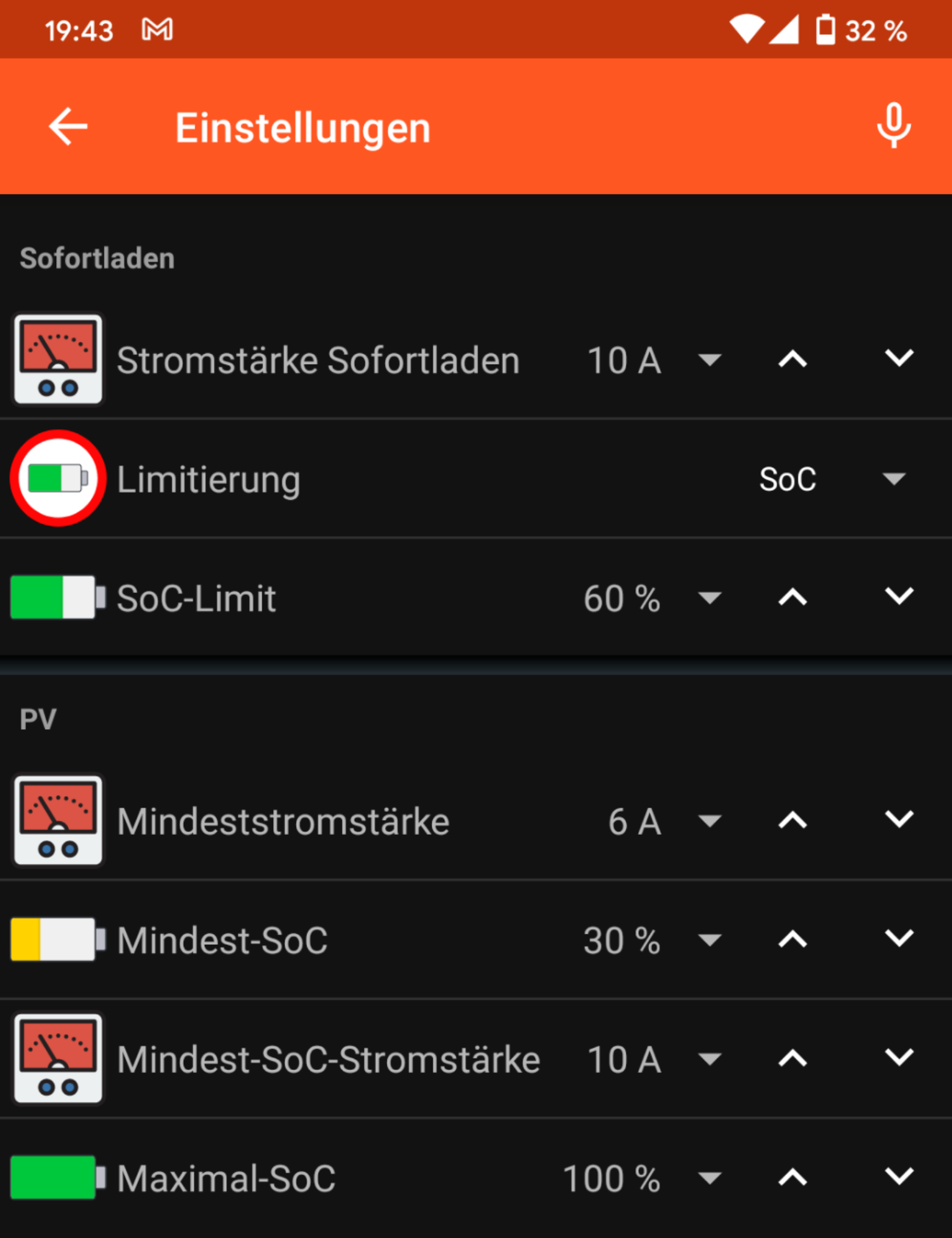 Gleiches gilt bei der Einstellung des ChargeMode und der Anzahl der Phasen.