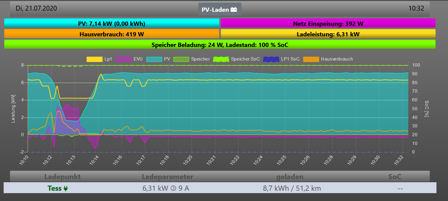 mich würde mal interessieren wie bei Euch die Ladekurven vom PV geführten laden aussehen, ich hab hier eine 'Sonderlösung' und bin mir nicht sicher ob alles perfekt läuft, würde daher gerne mal vergleichen.