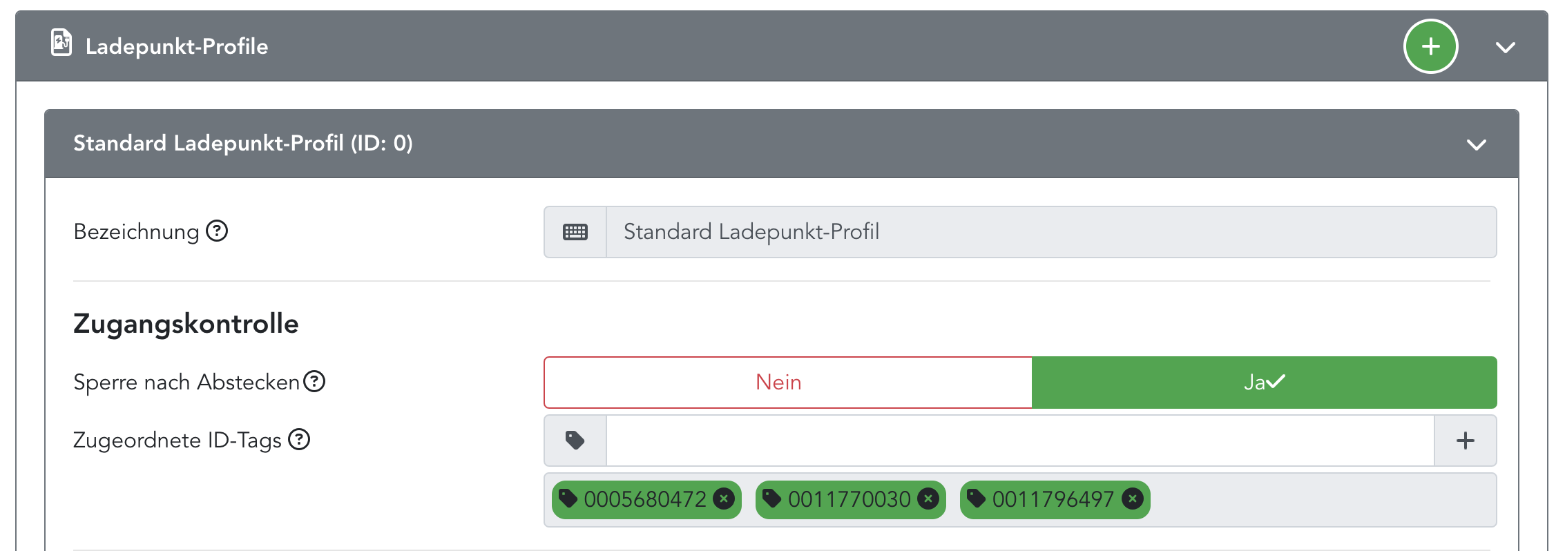 Ich verwende keine Standard-Profile und lege sowohl für LP als auch bei Fahrzeuge immer separate Profile an (bei Fahrzeugen nutze ich dann meist das Standard-Ladeprofil mit Stop-Funktion = "Standard nach Abstecken"-Schalter statt der LP-Sperre).