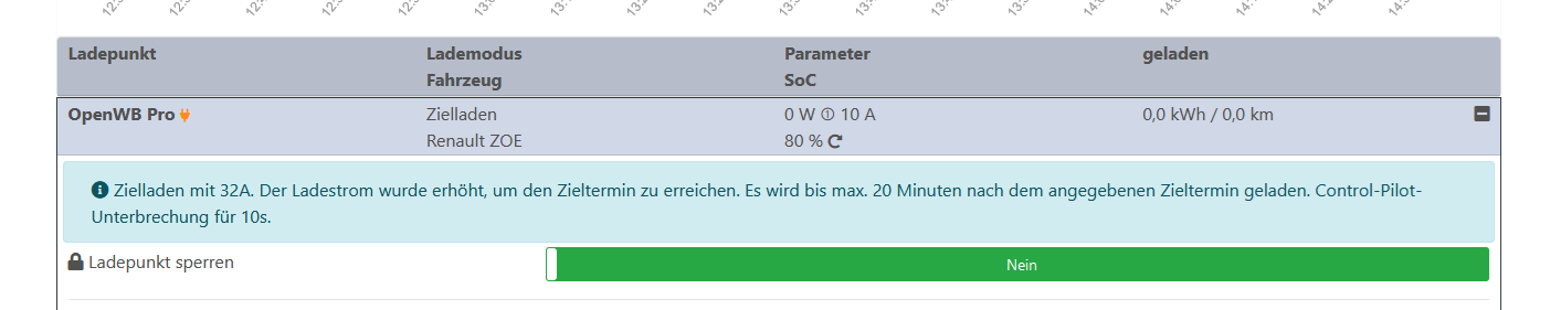 Als unsere pro zur Reparatur war, hatten wir unseren GO-e benutzt zum laden, da konnte ich jeder Zeit Umschalten von 1p auf 3p und anders herum, da hat der ZOE kein Problem mit gehabt, aber mit der openWB passiert es regellmäßig, dass dann trotz angebotenen Strom nicht geladen wird, irgend etwas läuft hier anders bei der Umschaltung, die Zeiten sind in der openWB genauso eingetragen wie im GO-e.
