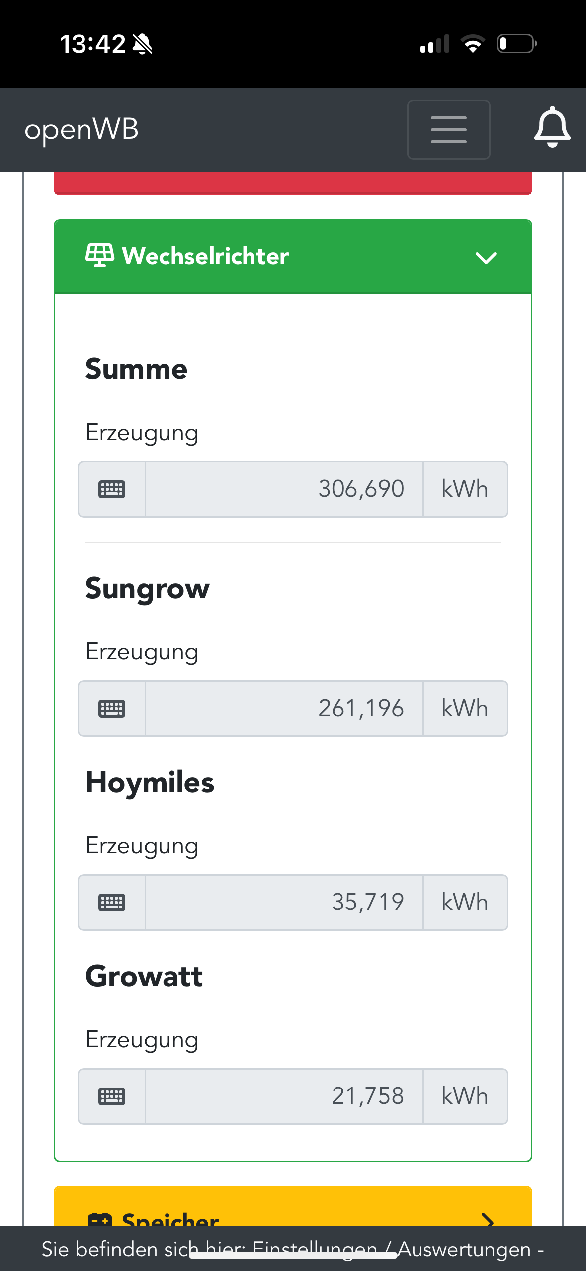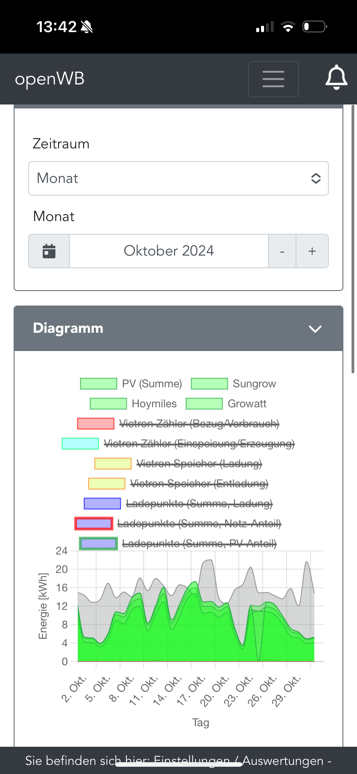 Danke für die Erläuterung. Ist so für mich dann auch nachvollziehbar.openWB hat geschrieben: Mo Nov 25, 2024 7:49 pm Die 1.9 hat stumpf negative Werte als 0 dargestellt. Das war nicht richtig.