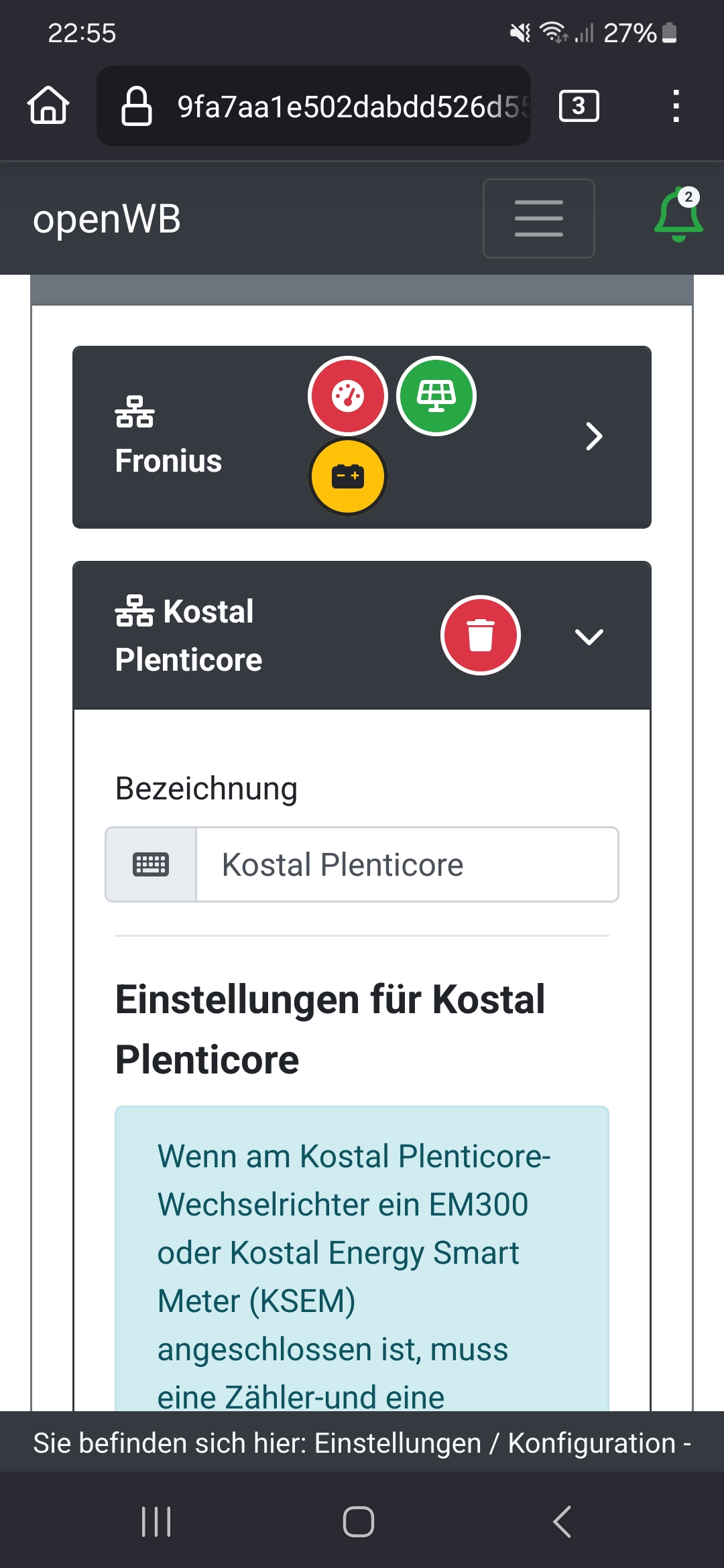 Ip Adresse passt definitiv, weil sonst würde ich ja nicht auf den wechselrichter kommen