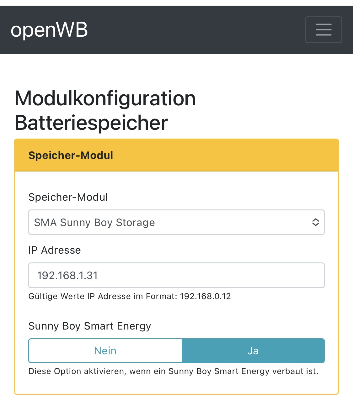 Leider bekomme ich die Batterie (+/- Wechselrichter?) nicht eingebunden. Den Hybridwechselrichter kann man in der OpenWB Konfiguration nicht auswählen (da gibts nur den SBS), und die Batterie selbst ist nicht abfragbar.