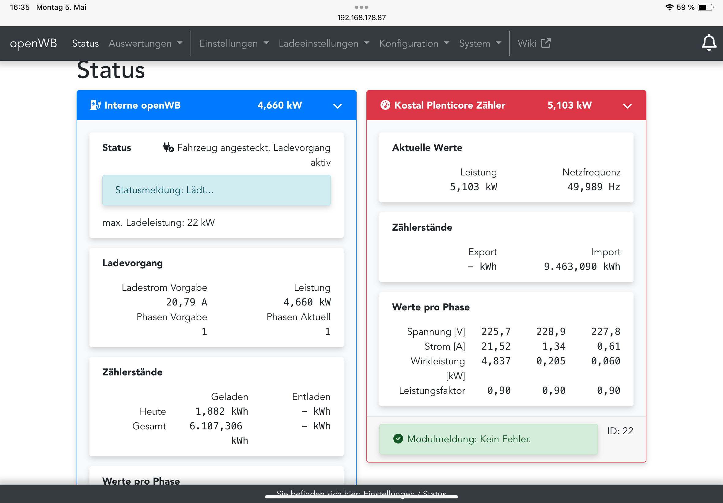 openWB-2 Standard+ | openWB EVU Kit v2 MID| 9,9kWp mit Kostal Plenticore 8.5 plus | VW ID.3, Kia EV6, Smart EQ forfour