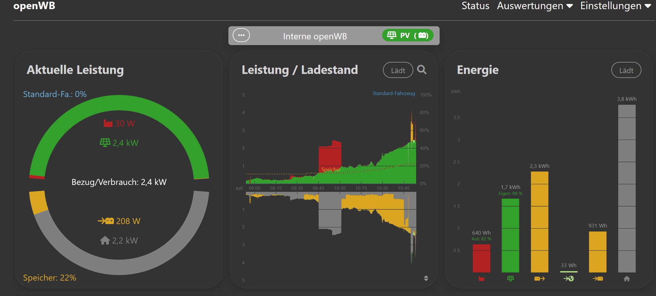 Vielen Dank für Eure Antworten. Ich hab gestern Abend nochmal alle Komponenten neu eingerichtet, eigentlich mit denselben Einstellungen. Jetzt wird offenbar zumindest die Erzeugung (grün) in alle Graphen geladen. Das Laden am LP (blau) fehlt aber nach wie vor in der 120min Ansicht.