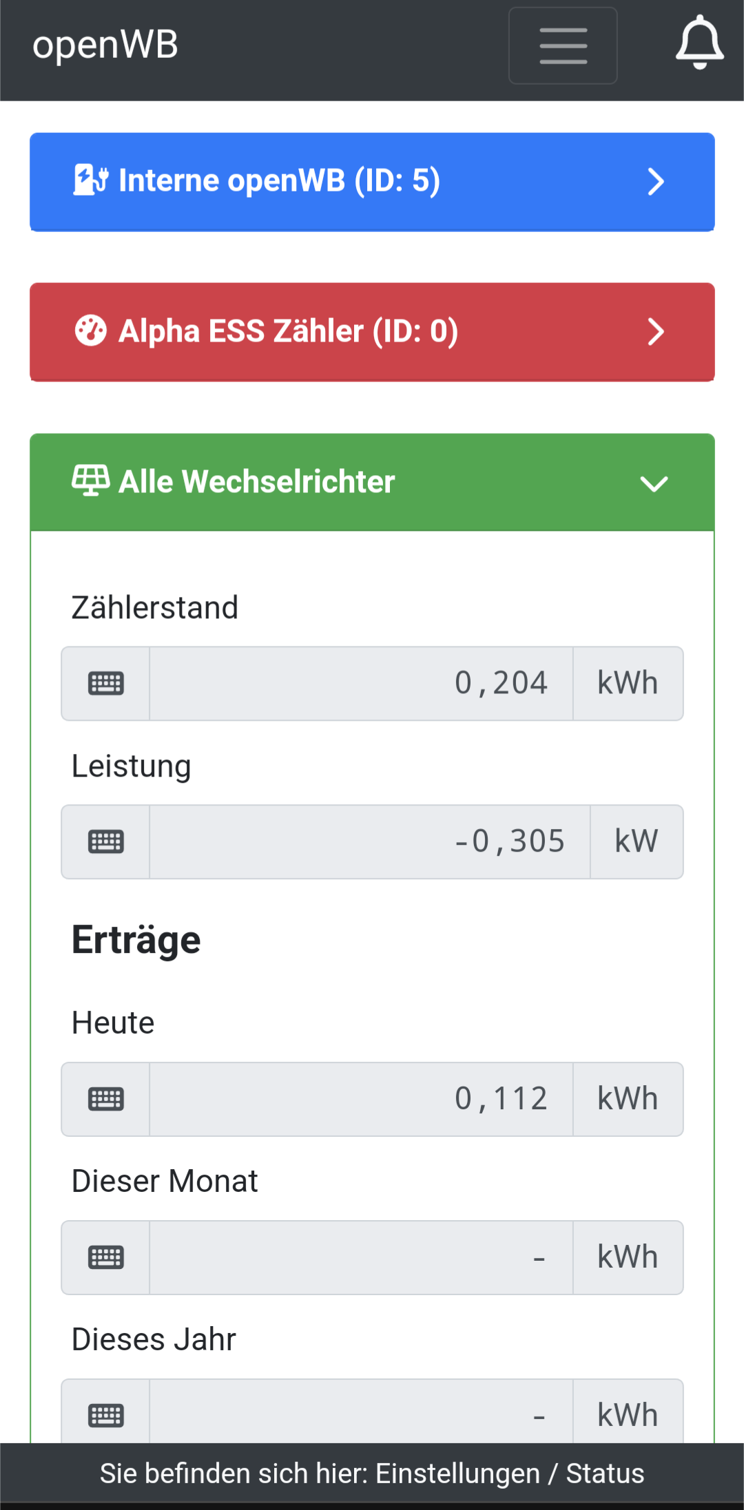 Ich werde berichten, sobald ich weiß wie das Zusammenspiel mit dem AlphaESS WR und dem Monitoring in der OpenWB klappt.