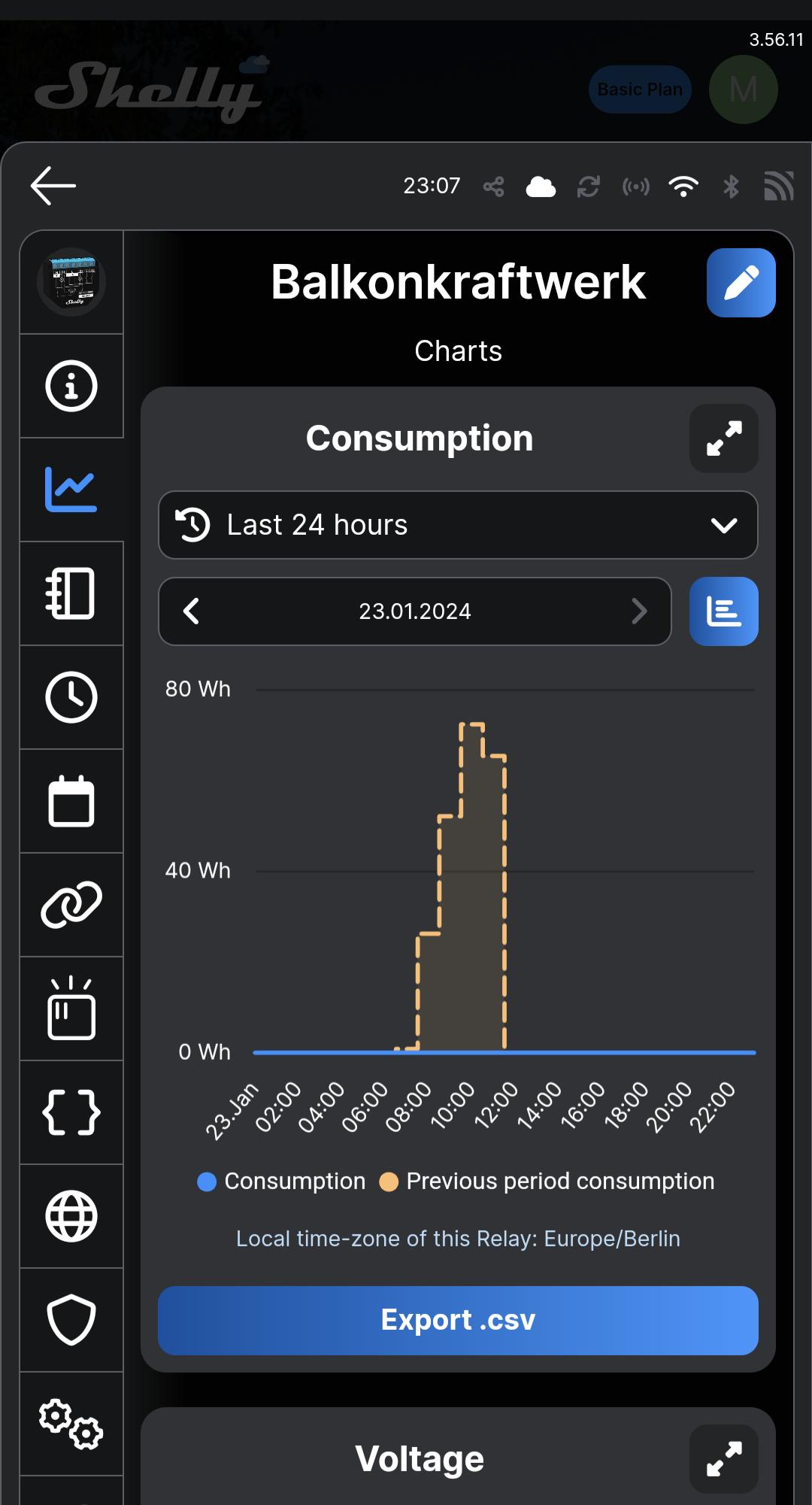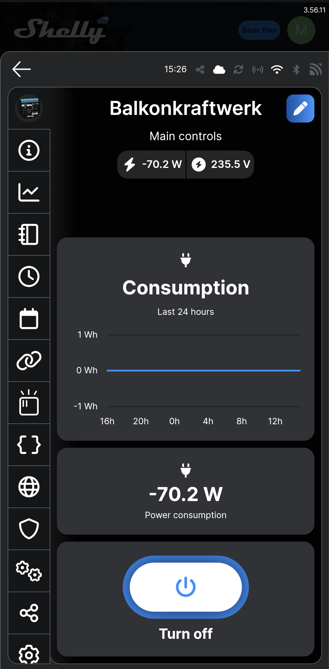Allerdings habe ich seit heute beobachtet, dass mein Shelly Plus 2 PM zwar die aktuelle Leistung in der App anzeigt, aber leider keine Daten in der Diagramm-Ansicht unter "Consumption" mitgeschrieben werden. Ich werde das mal beobachten. Hoffe der Shelly macht nicht schon schlapp.