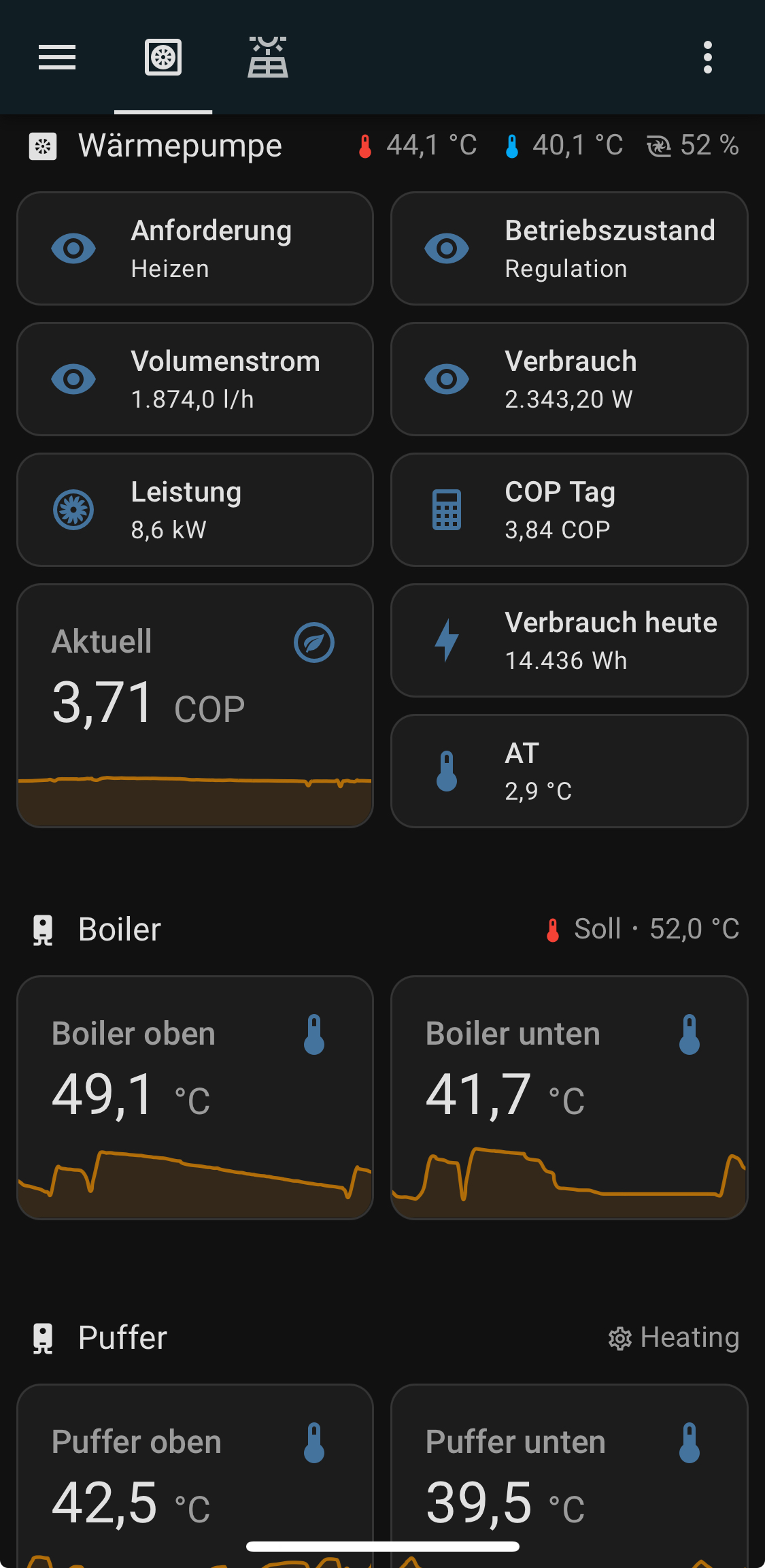 Lexion hat geschrieben: Mi Apr 09, 2025 6:05 am Hat schon mal jemand die Wärmemengendaten ausgelesen und mit den extern ermittelten Verbrauchsdaten verrechnet um sich in der Open WB eine Arbeitszahl anzeigen zu lassen?
