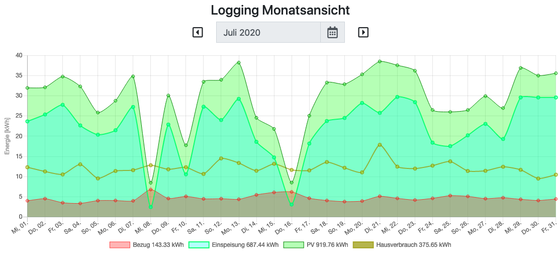 cpm hat geschrieben: Mi Aug 05, 2020 10:10 am Bei mir ist der Bezug konstant 283 W. Dieser wird in der Startseite aber nicht mehr negativ angezeigt. Der Hausverbrauch ist grob auch PV + Bezug.