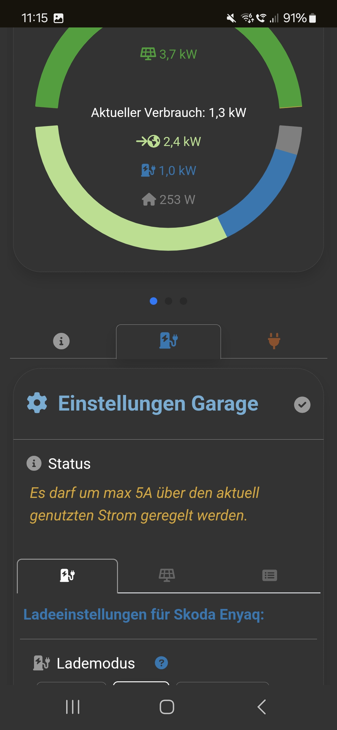 viewtopic.php?t=1526Bubbagump hat geschrieben: So Apr 20, 2025 9:22 am Seit update von 2.1.6 auf 2.1.7 lädt mein skoda Enyaq im PV Modus auf einer Phase nur noch mit 1Kw, obwohl wesentlich mehr Überschuss verfügbar wäre.