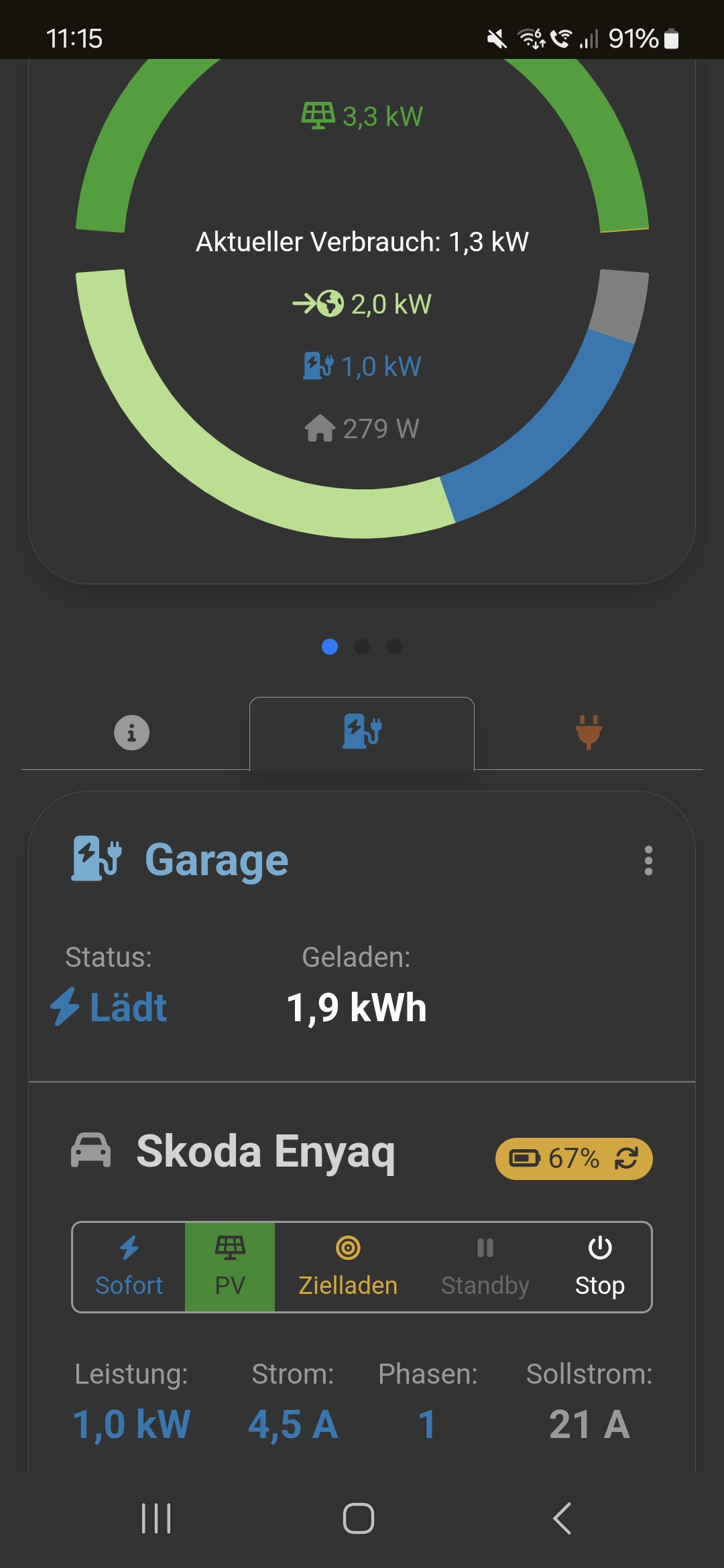 viewtopic.php?t=1526Bubbagump hat geschrieben: So Apr 20, 2025 9:22 am Seit update von 2.1.6 auf 2.1.7 lädt mein skoda Enyaq im PV Modus auf einer Phase nur noch mit 1Kw, obwohl wesentlich mehr Überschuss verfügbar wäre.