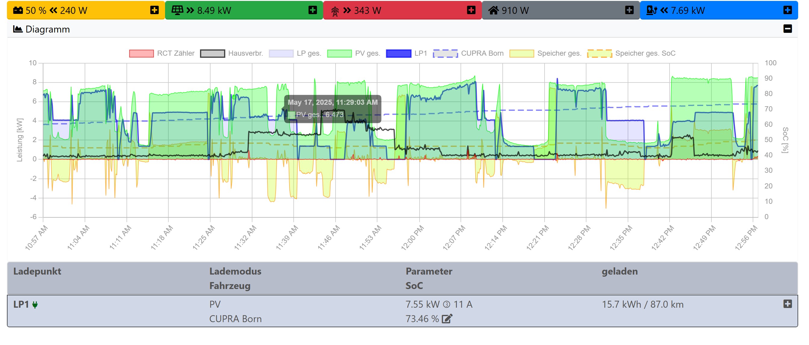 aiole hat geschrieben: Do Mai 29, 2025 5:22 pm Check mal unter Status -> betreffender Ladepunkt, ob immer alle 3 Phasen beim Laden angezeigt werden oder ob eine (meist L2 oder L3) ab und an verschwindet.