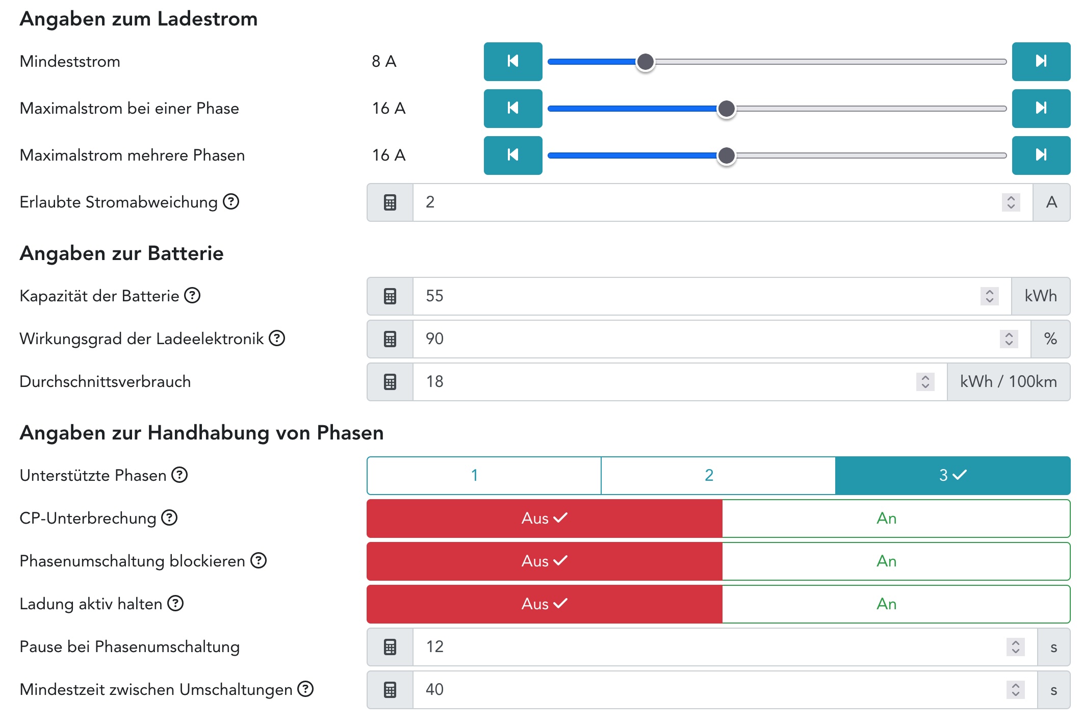 Beim Anschluss des Ladekabels hatte der Elektriker seinerzeit L3, L2, L1 aufgelegt, und in der Konfiguration hatte ich die Voreinstellung nicht verändert. Ich erinnere, dass es da eine Option "automatisch" gab, die aber in der aktuellen Software so nicht mehr existiert.