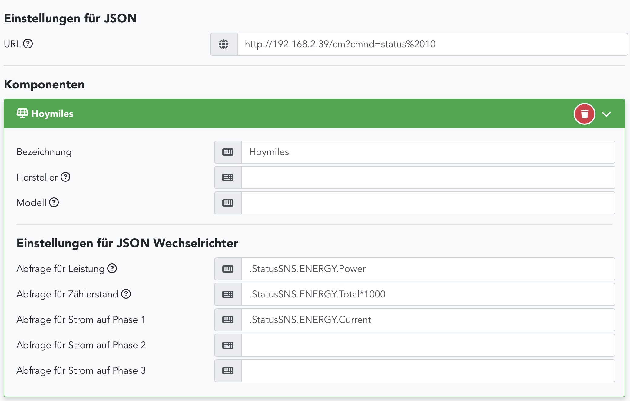 Wie erwartet openWB denn die Daten für Phasenströme? Ich habe 2 Wechselrichter über json eingebunden, bei denen ich gerade die Phasenströme übernehmen wollte. Leider wird im Status kein Wert angezeigt. Ich habe auch schon versuch das Vorzeichen zu ändern (.StatusSNS.ENERGY.Current*-1) leider ohne Erfolg.