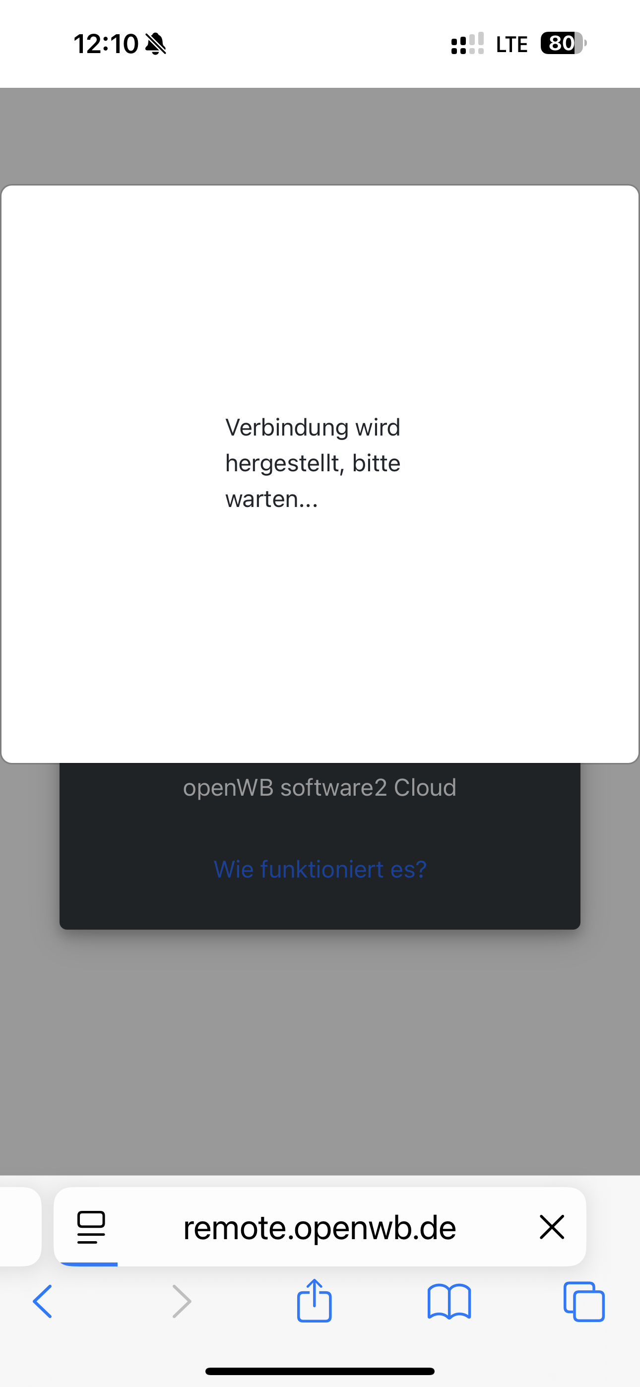 Das kommt bei meinem Versuch mich zu verbinden. Werde jetzt die openWB auf die aktuellsten Stand bringen, mal sehen was dann passiert.