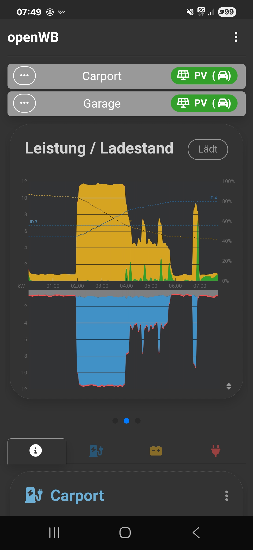 ich habe die Ladung nochmal gestartet mit PV (Überschuß Kfz).