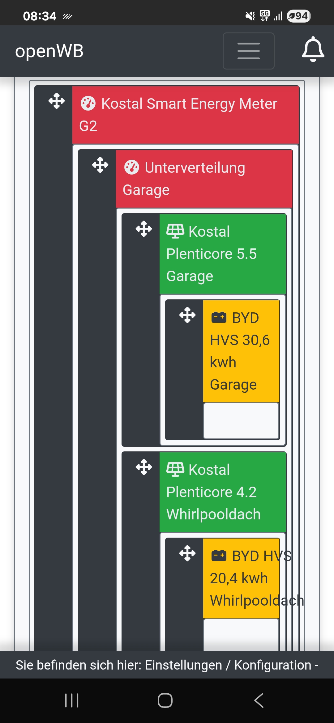 openWB Series 2 Duo mit EVU, 1/3 Umschaltung und abgesetztem Display, 16 kWp mit Solaredge, Ansteuerung Haushaltsgeräte mit Shelly