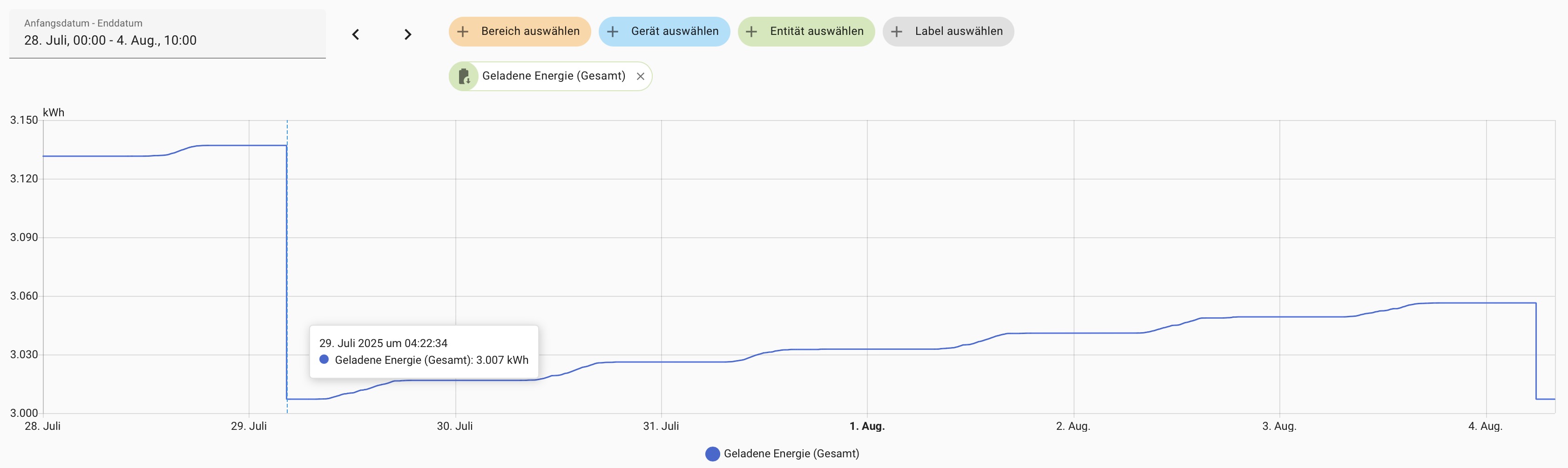 Also nur um das noch einmal unmissverständlich zu kommunizieren: Es fallen wirklich die Werte der Simcounter in openWB. Die Werte in Home Assistant spiegeln nur den Wert aus openWB wieder. Wenn ich das Backup der openWB von heute Nacht (vor dem Fehler) einspiele, haben alle simcounter auch wieder höhere Zählerstände.LutzB hat geschrieben: Mo Aug 04, 2025 7:52 amDiese Symptome sind eher ein Zeichen dafür, dass etwas externes per MQTT-Brücke angebunden ist und die Daten nach einem Verbindungsverlust einfach mit einem alten Stand überschreibt.kai9555 hat geschrieben: Mo Aug 04, 2025 6:12 am Hier noch einmal alle weiteren Beobachtungen: